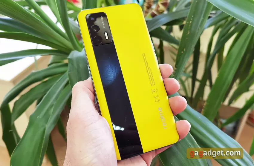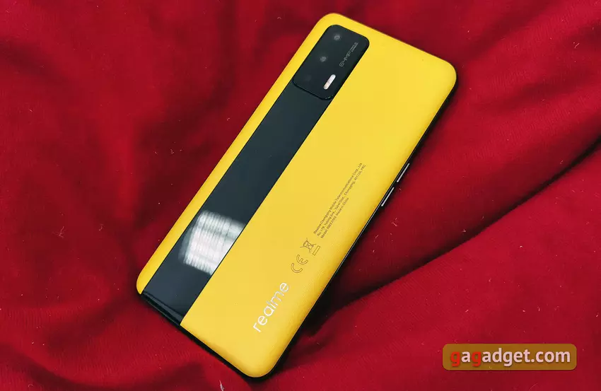 Prawie wszystkie nowoczesne smartfony mają standardowy format. A wykonanie ciekawego designu w takich warunkach jest dość trudne. Pozostaje tylko bawić się kolorami, materiałami i zakrzywionymi ekranami. Co nie wszystkim się podoba. Realme GT udało się zaskoczyć. Najciekawsza wersja trafiła do nas z jasnożółtym tłem ze sztucznej skóry, które wizualnie kojarzy się z samochodami wyścigowymi. Właściwie nazwa smartfona bezpośrednio wskazuje na motyw „wyścigowy”. Z prostokątnego bloku aparatu głównego wystaje ozdobny pasek szkła. Dla tych, którzy nie są gotowi na takie eksperymenty kolorystyczne, są bardziej znane opcje z całkowicie szklanym tłem w kolorze czarnym, niebieskim i srebrnym.