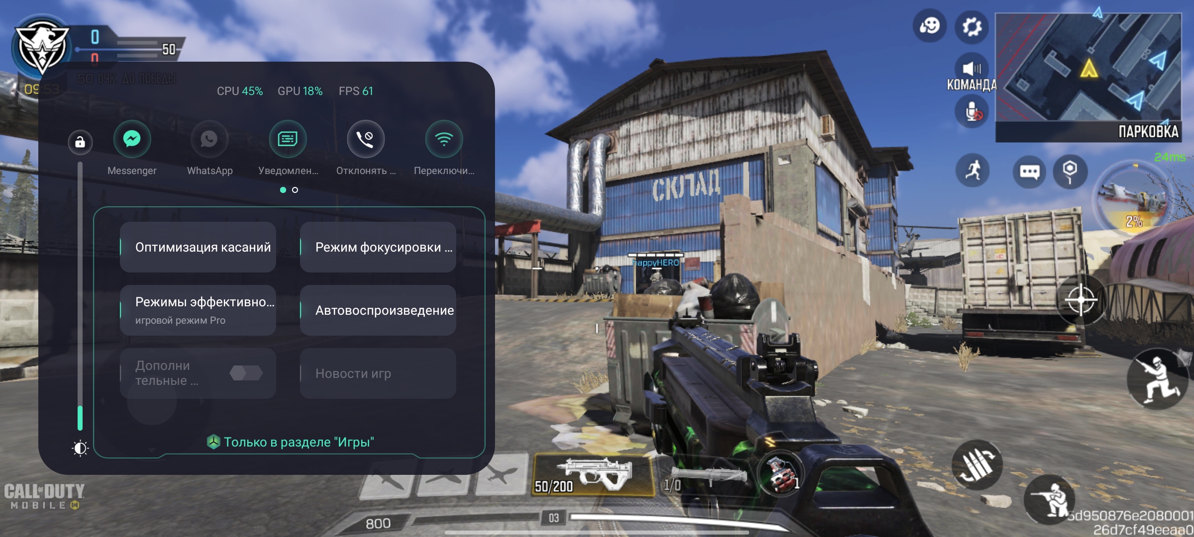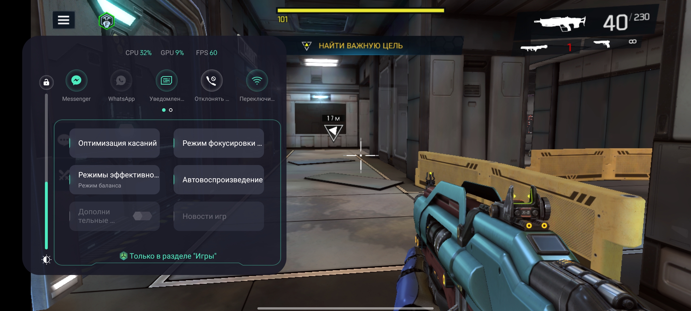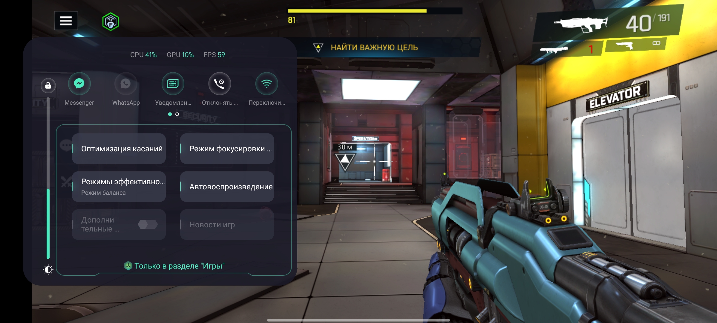 Nie ma problemów z interfejsem i działaniem ciężkich aplikacji. Gry również działają bezproblemowo. Call of Duty Mobile, Genshin Impact i Shadowgun Legends pokazują prawie stabilne 60 klatek na sekundę. Jedyną osobliwością jest Shadowgun Legends: obsługuje ekrany 120 Hz, ale z jakiegoś powodu nie zapewnia więcej niż 60 w realme GT. W zastrzeżonej aplikacji do gier możesz wybrać poziom wydajności, wyłączyć powiadomienia, dostosować czułość czujnika ekranu, zablokować poziom jasności i tak dalej.