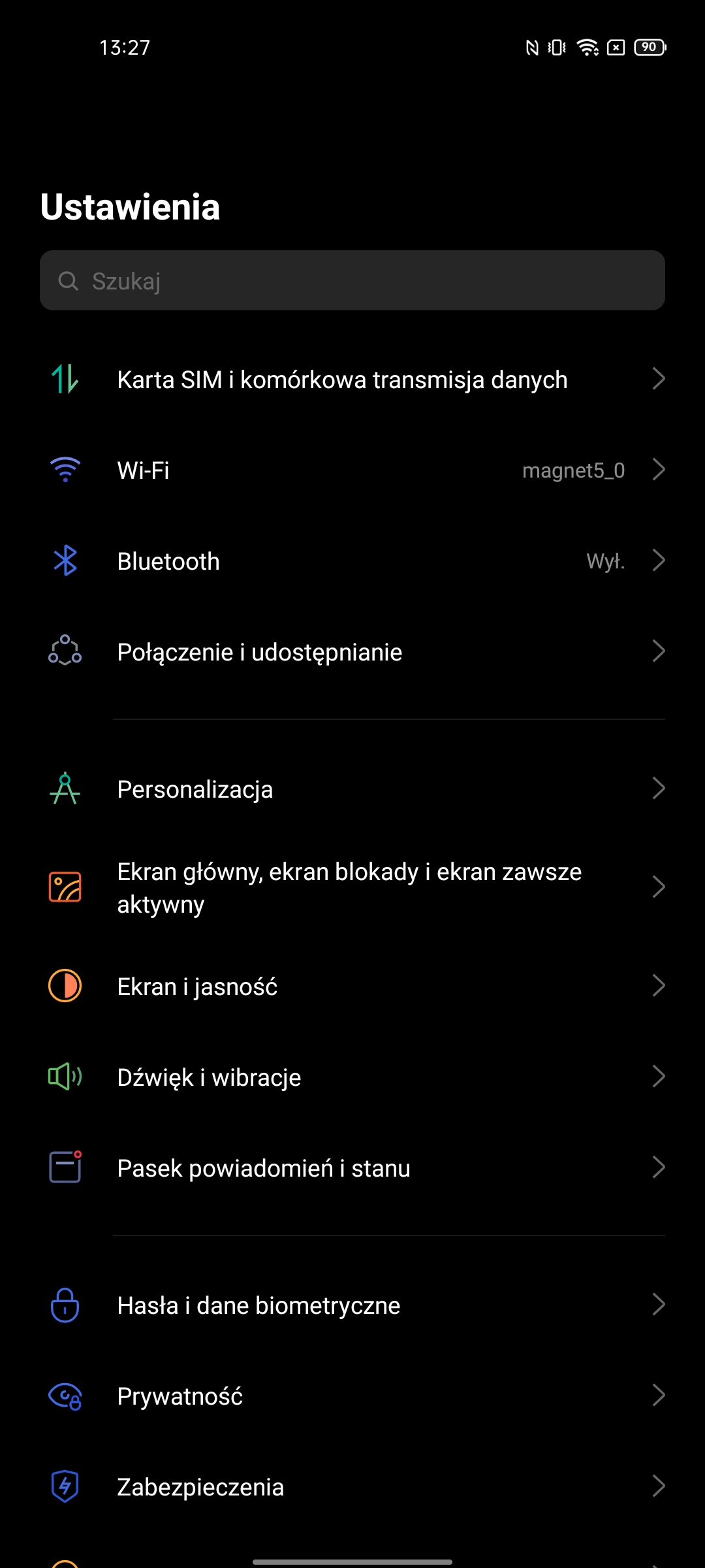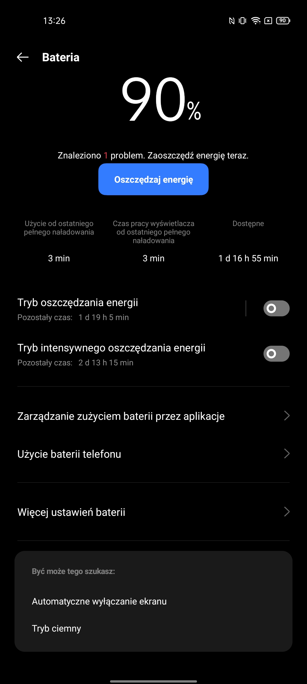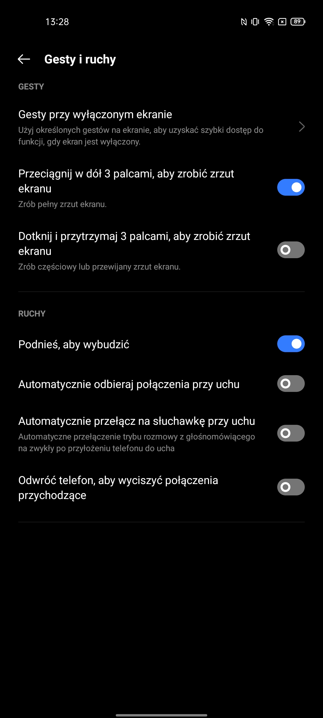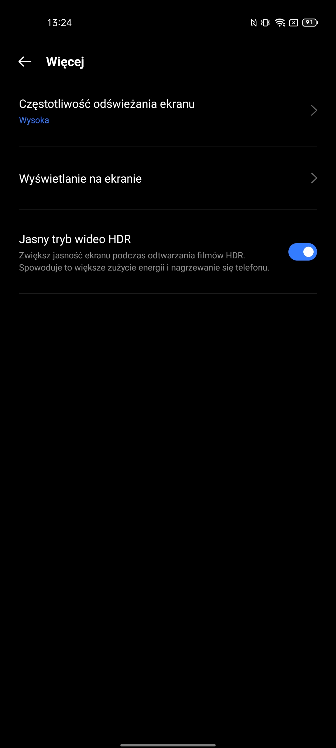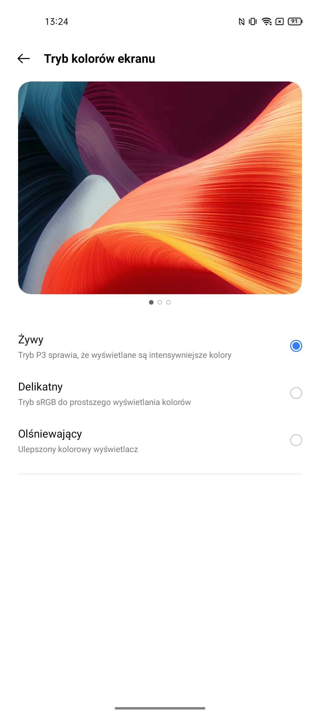 Ustawienia mają bardzo imponującą liczbę możliwości. W tym standardowe: ciemny motyw interfejsu, wybór częstotliwości odświeżania, ustawienie temperatury kolorów, Always on Display, rozmiar czcionki, różne ulepszenia treści wideo i trzy tryby renderowania kolorów.Migotanie DC Dimming jest również dostępne, ale w osobnym menu ustawień Realme Labs.