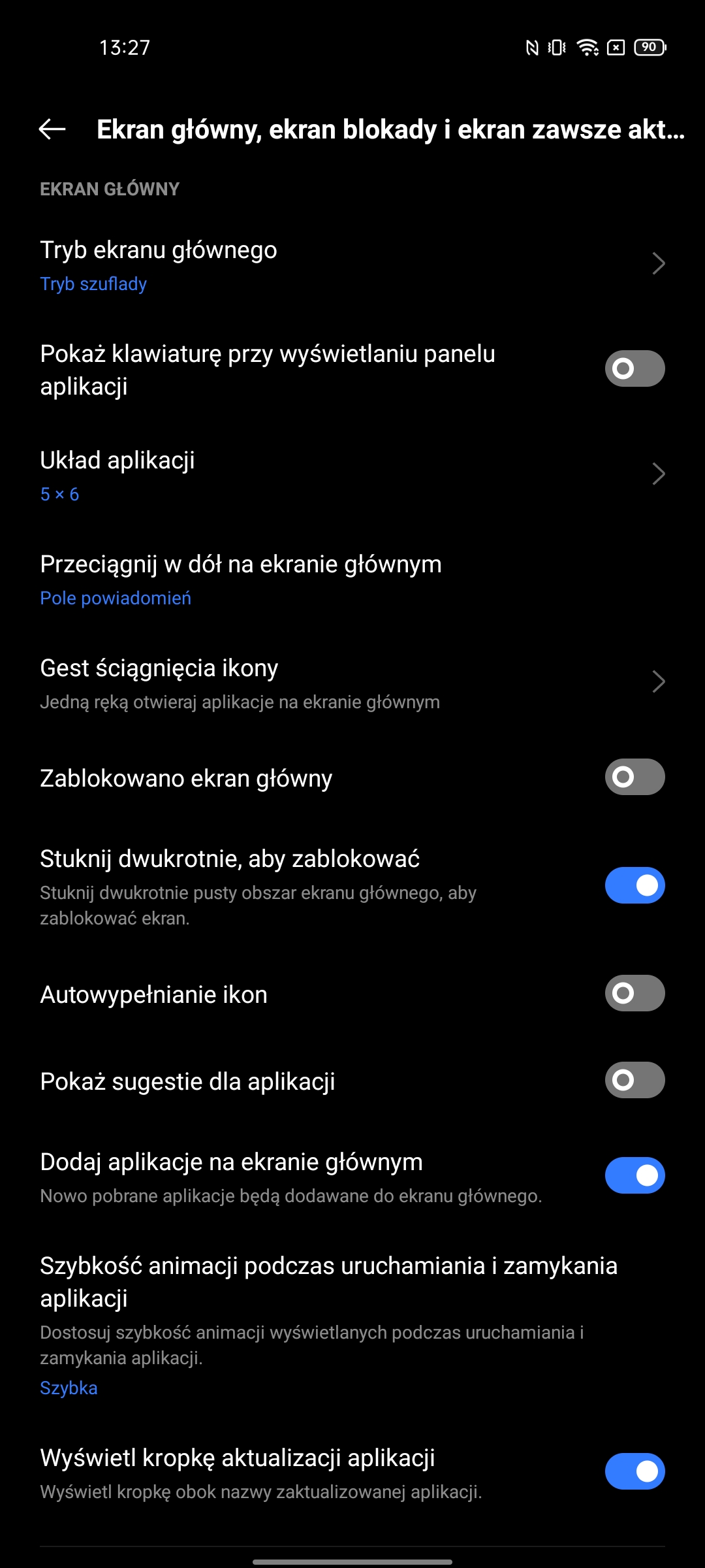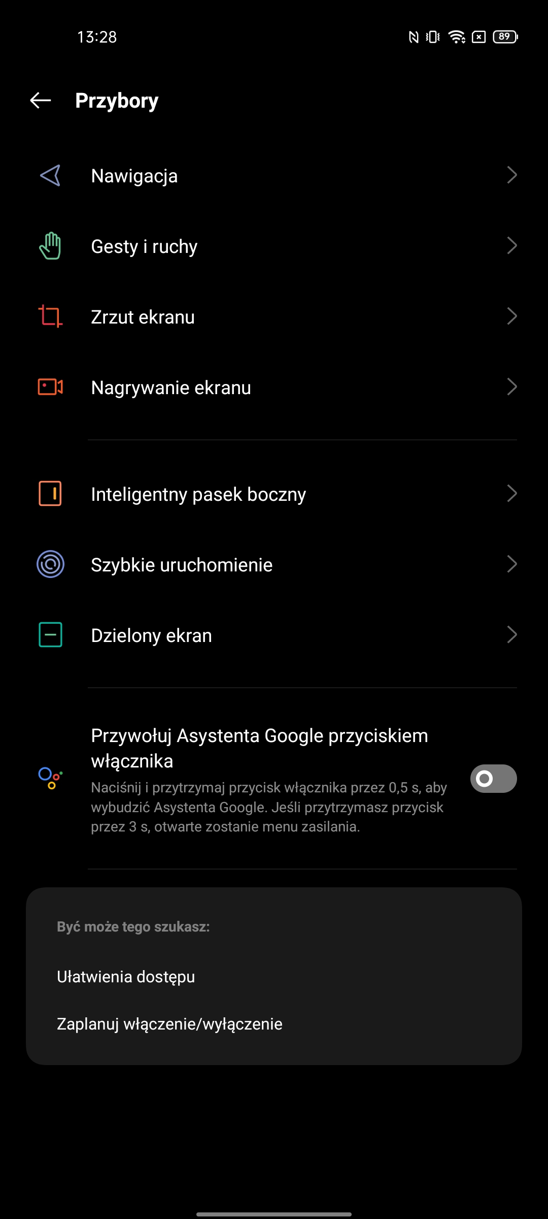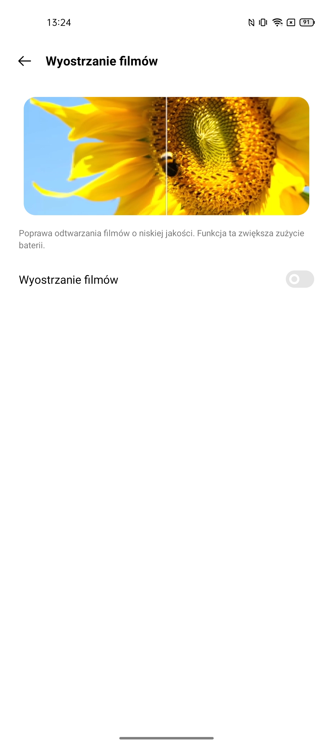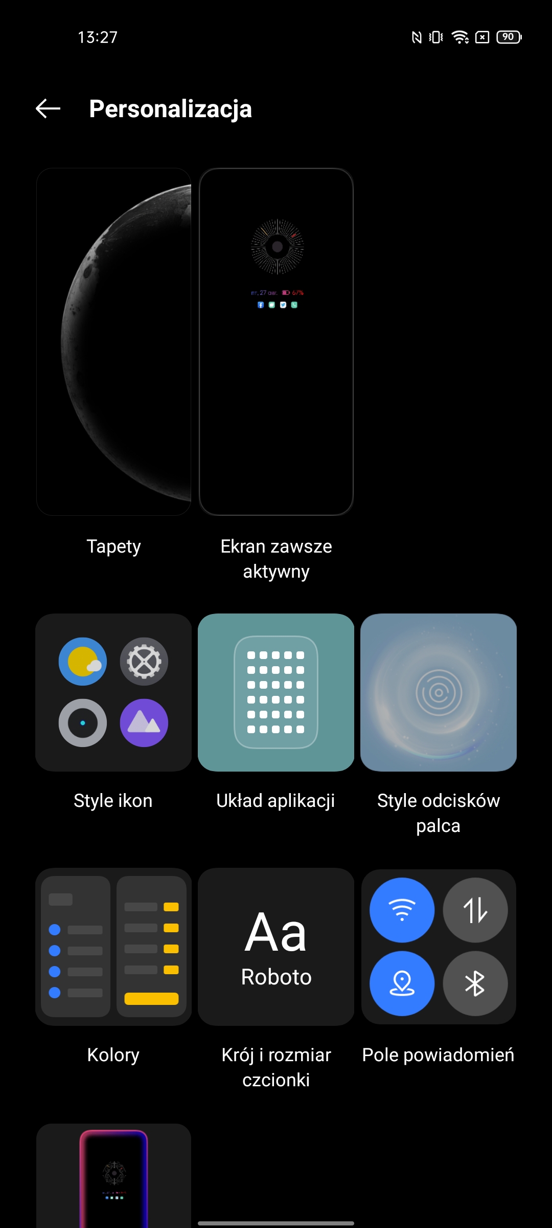 Ustawienia mają bardzo imponującą liczbę możliwości. W tym standardowe: ciemny motyw interfejsu, wybór częstotliwości odświeżania, ustawienie temperatury kolorów, Always on Display, rozmiar czcionki, różne ulepszenia treści wideo i trzy tryby renderowania kolorów.Migotanie DC Dimming jest również dostępne, ale w osobnym menu ustawień Realme Labs.