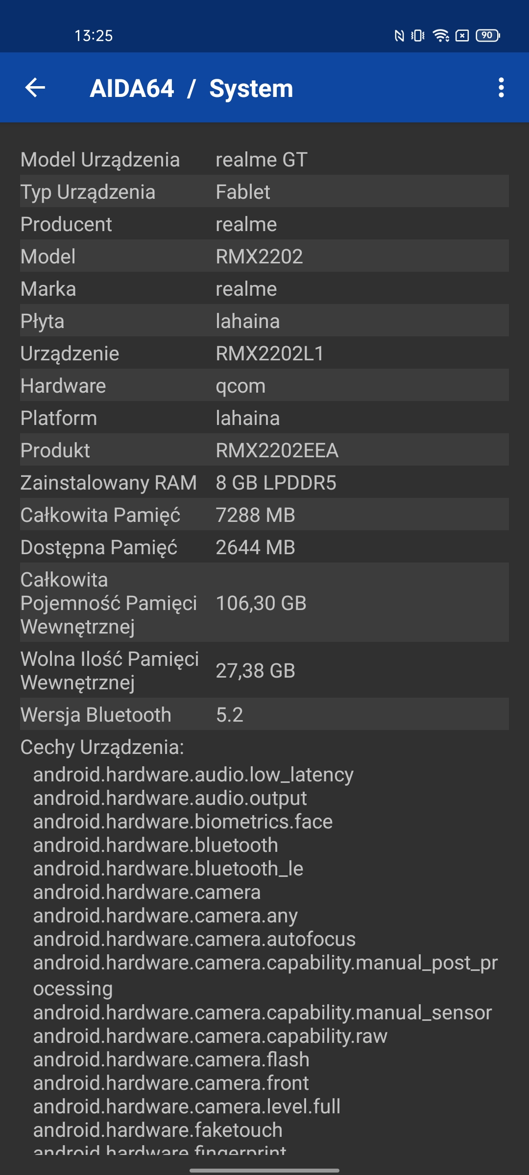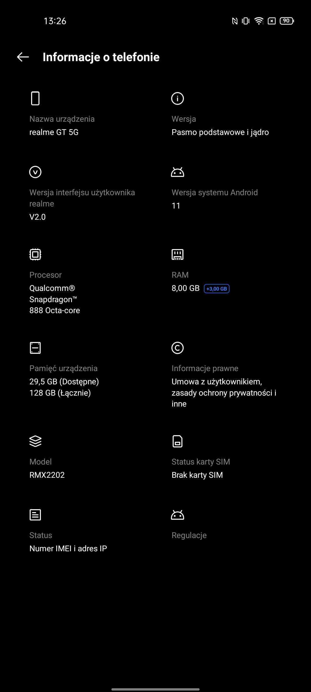Dane techniczne Realme GT |