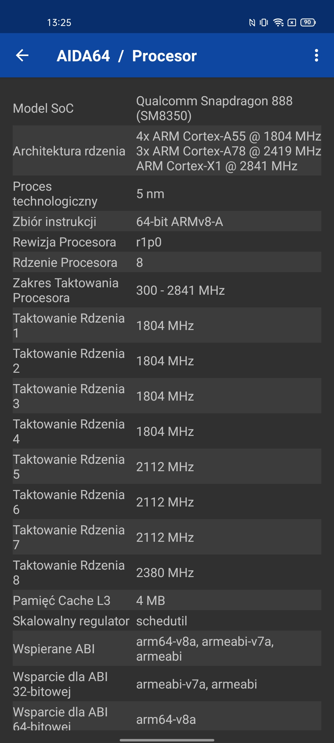 | Procesor | 64-bitowy 5nm Qualcomm Snapdragon 888, 1xKryo 680, 2.84GHz, 3xKryo 680 2.42GHz, 4xKryo 680 1.8GHz, grafika Adreno 660 |