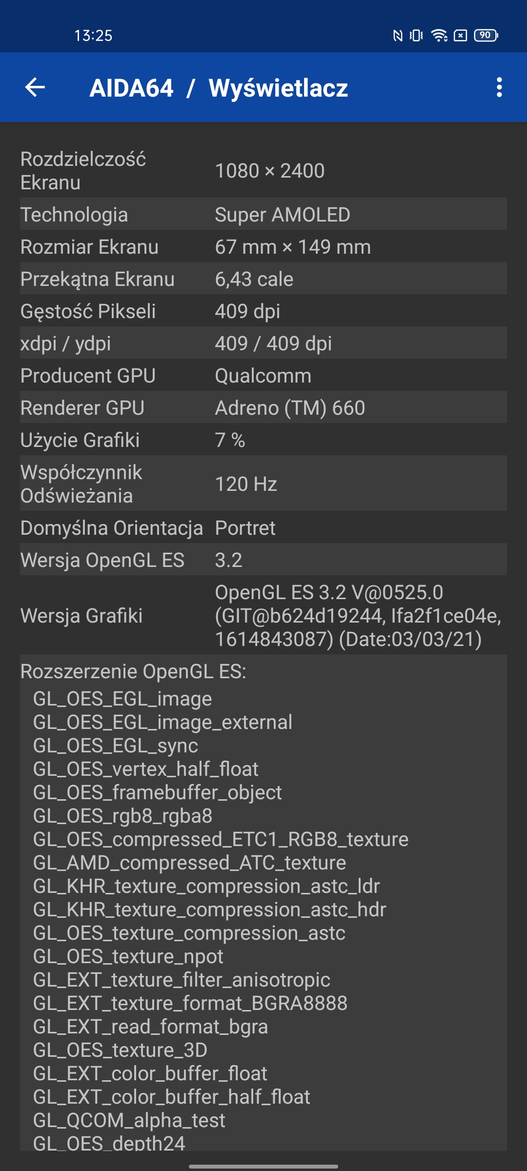 | Wyświetlacz | AMOLED, 6,43 cala, 2400x1080, 409 ppi, 120 Hz, HDR |