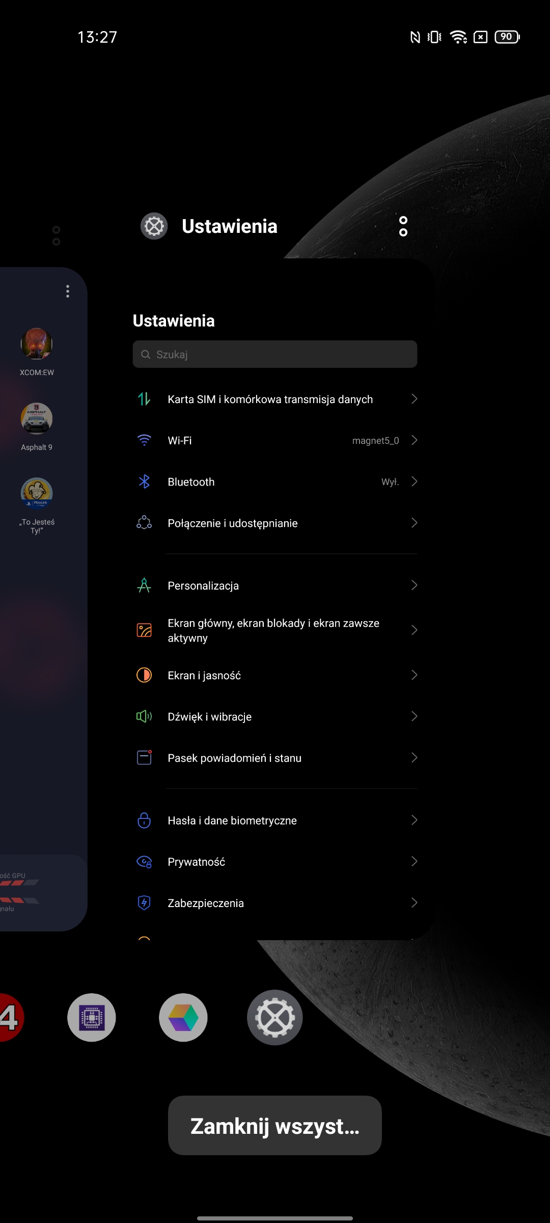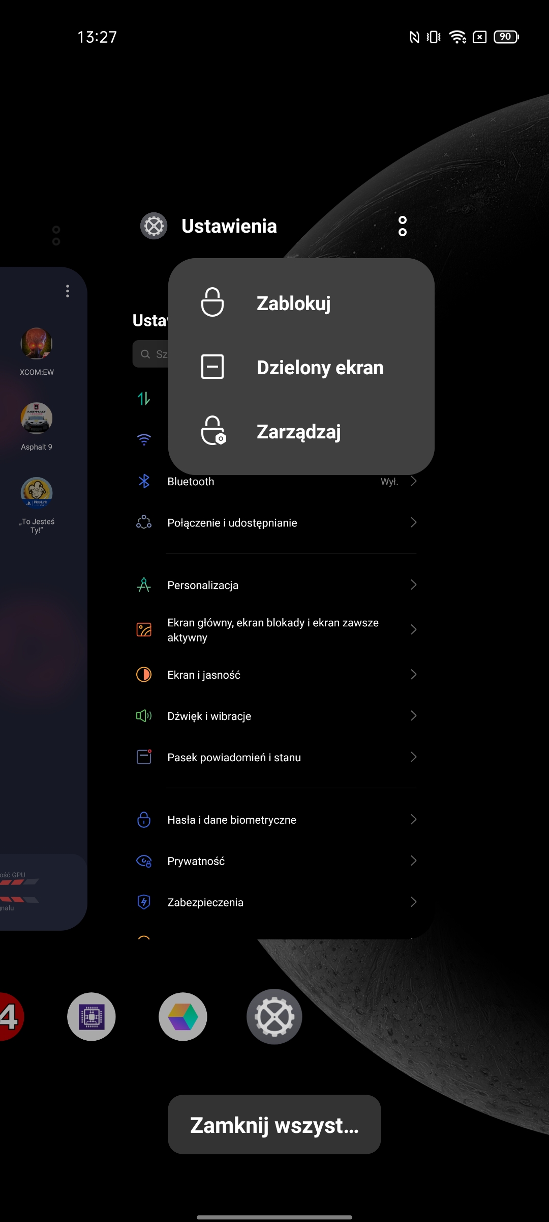 Menedżer aplikacji pozwala zamknąć wszystko lub przypiąć określone aplikacje. Niektóre aplikacje obsługują pracę w zmniejszonym oknie. I oczywiście obecny jest również tryb podwójnego okna.