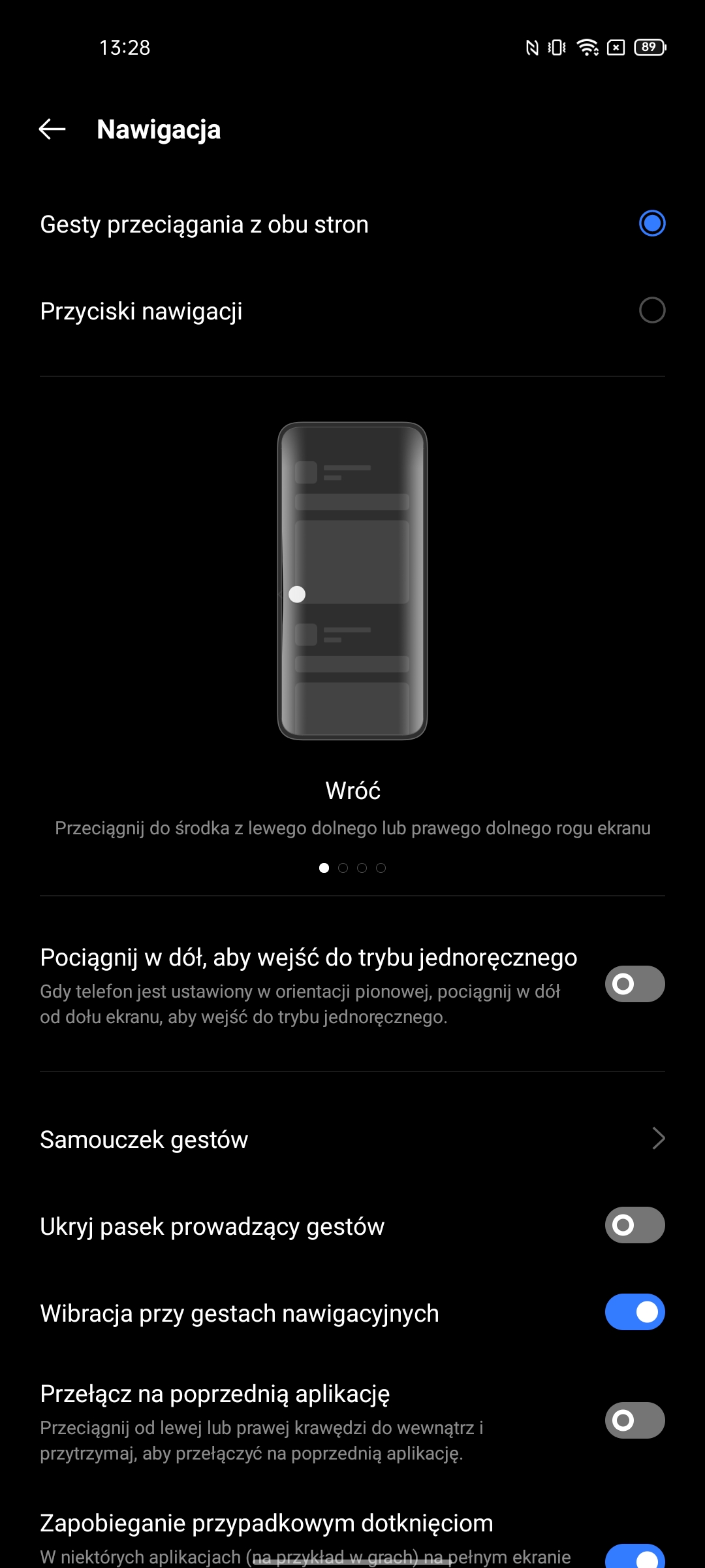 Nawigacja dostępna jest zarówno gestem, jak i klasycznie z trzema przyciskami. Ponadto na aktywnym i wyłączonym ekranie dostępnych jest wiele gestów, które umożliwiają szybkie zrzuty ekranu, przełączanie się w tryb dwóch okien, sterowanie muzyką, szybkie uruchamianie aparatu i tak dalej. Skaner linii papilarnych można skonfigurować tak, aby szybko uruchamiał trzy aplikacje: przytrzymać palec na skanerze, a następnie przesunąć go na żądaną ikonę. Istnieje również tzw. inteligentny panel z najczęściej używanymi aplikacjami. Otwiera się, przesuwając się od krawędzi ekranu do określonej lokalizacji.