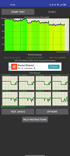Qualcomm Snapdragon 888 to dość “gorący” procesor i jest podatny na przegrzanie w większości smartfonów, z którymi się spotkaliśmy. Realme twierdzi, że GT używa specjalnego stalowego układu chłodzenia. Test warunków skrajnych wykazał, że wydajność może spaść nawet o 80%. Nie krytyczne, ale to fakt. Z drugiej strony sam smartfon pozostaje ciepły i nieprzyjemnie się nie nagrzewa.