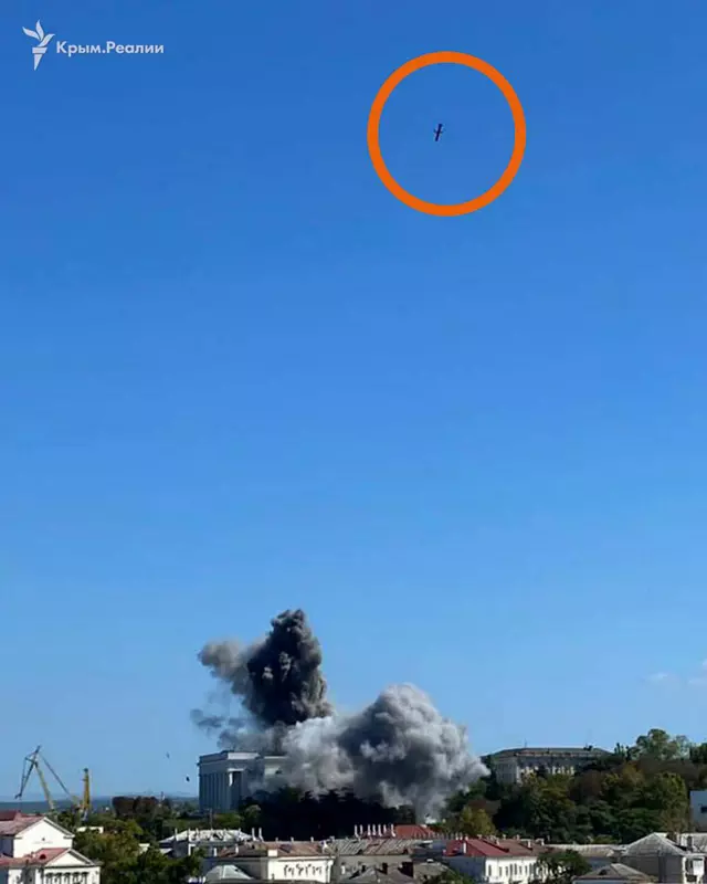Spowolnione i powiększone nagranie ukraińskiego pocisku ALCM Storm Shadow/SCALP wbijającego się w (i przez) dach rosyjskiej siedziby Floty Czarnomorskiej. pic.twitter.com/c8mas1OzAg