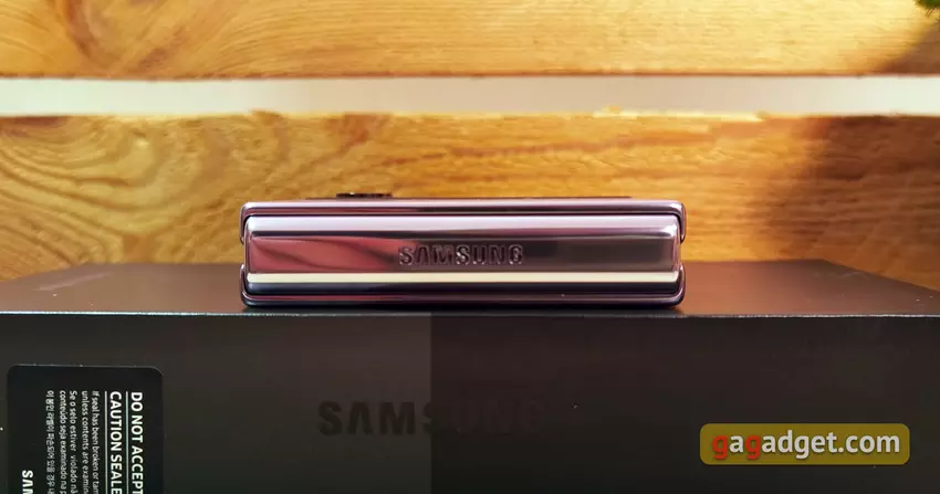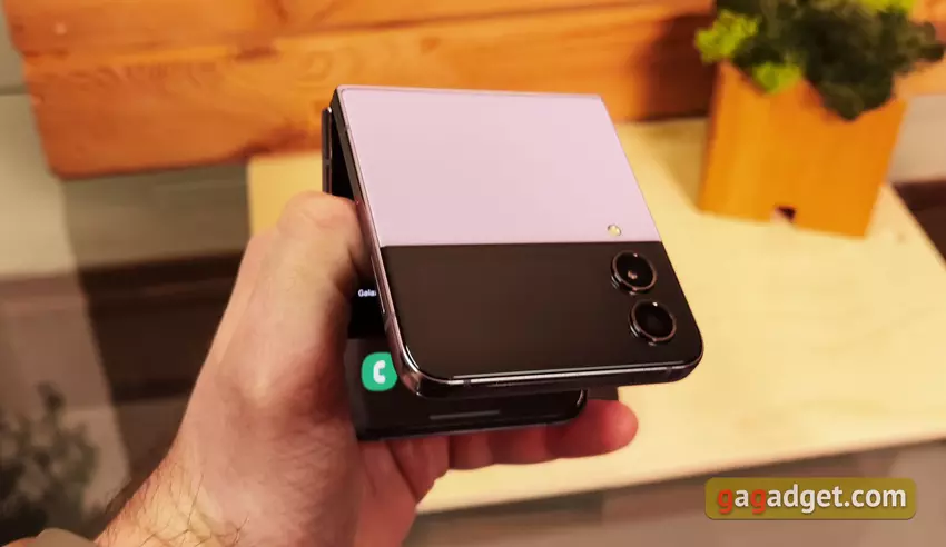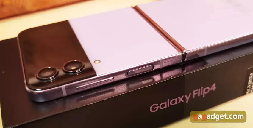 Wszystkie zewnętrzne powierzchnie smartfona chroni szkło Gorilla Glass Victus+, większość powierzchni jest matowa, odciski palców prawie nie zostają. Jedynie obszar z dodatkowym wyświetlaczem i aparatami jest błyszczący. Zeszłoroczny Flip3 miał dość szerokie metalowe wstawki na styku połówek. W Flip4 zostały one wykonane znacznie cieńsze. Jeśli chodzi o wybór kolorów, to jest jeszcze bardziej powściągliwa opcja czarna.
