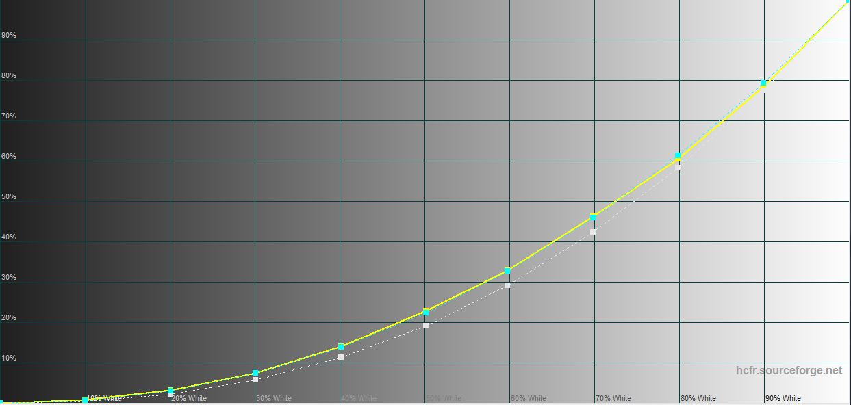 W trybie "naturalnym" gama kolorów jest zbliżona do sRGB, a odchylenie od referencyjnego wyświetlania kolorów jest niewielkie w kierunku chłodnych odcieni. Maksymalna jasność jest nieco niższa: 712.753 cd/m2.