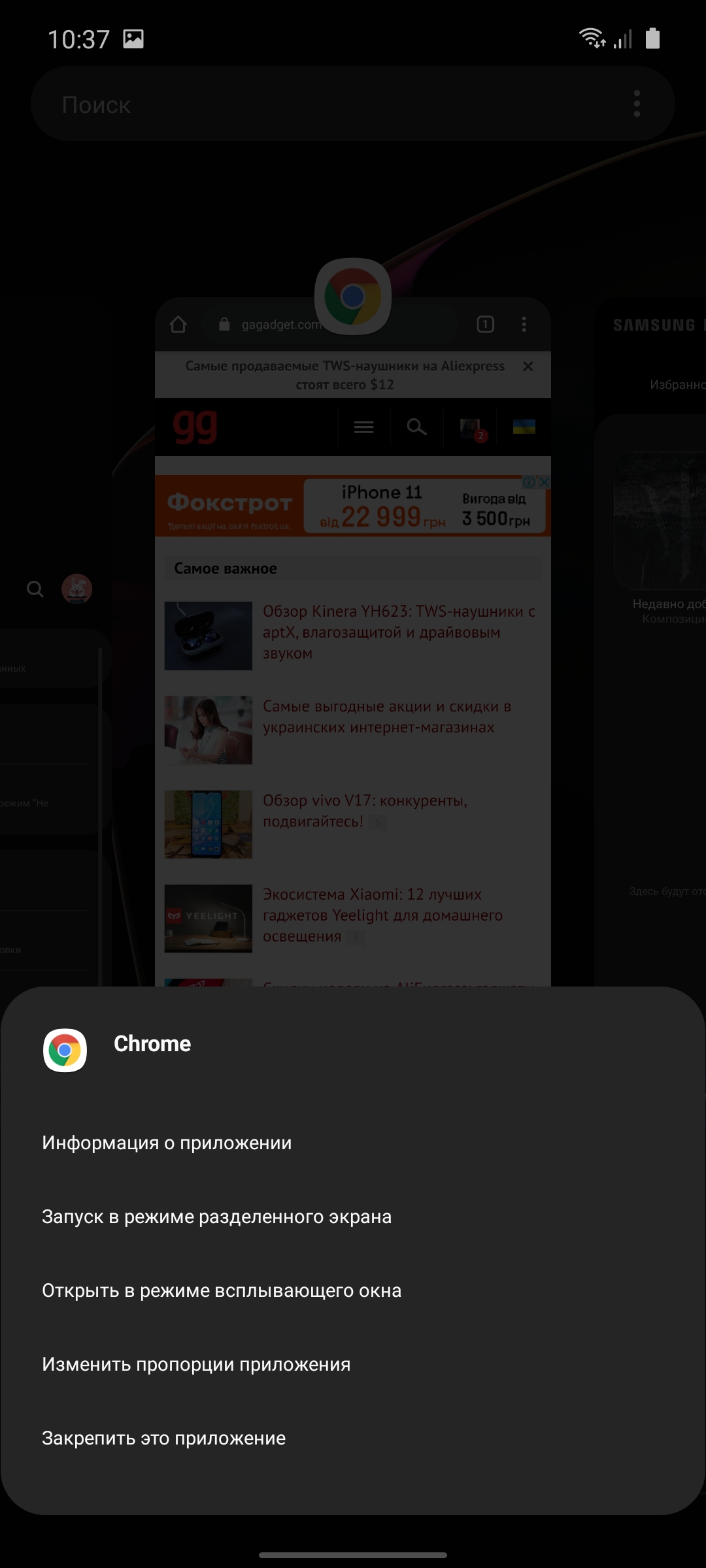 W poprzedniej wersji One UI były dwie opcje nawigacji: standardowy pasek przycisków i nawigacja gestami. Ale ten ostatni był w rzeczywistości duplikacją tych samych przycisków, tyle że nie musiałeś je wyciskać, ale przeciągać z pożądanej części dolnej krawędzi ekranu do gury. Teraz dodano wygodniejszą opcję nawigacji gestami, tak jak w nowym Androidzie 10. Wstecz - ruch z prawej lub lewej krawędzi ekranu, strona główna - od dołu, menedżer aplikacji - również pociągnij od dolnej krawędzi i przytrzymaj palec. Ta opcja wydaje mi się wygodniejsza i bardziej logiczna.