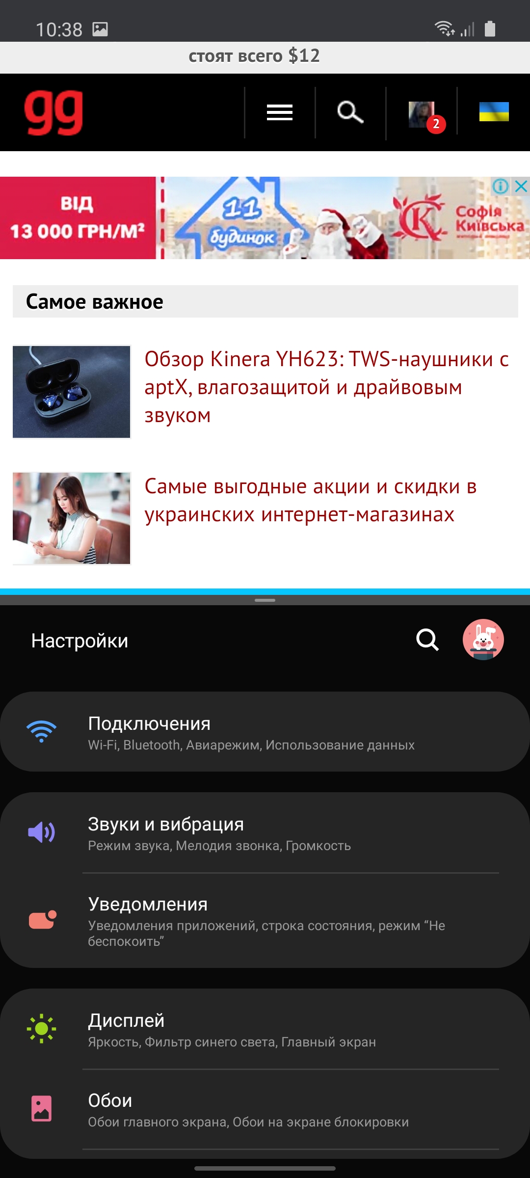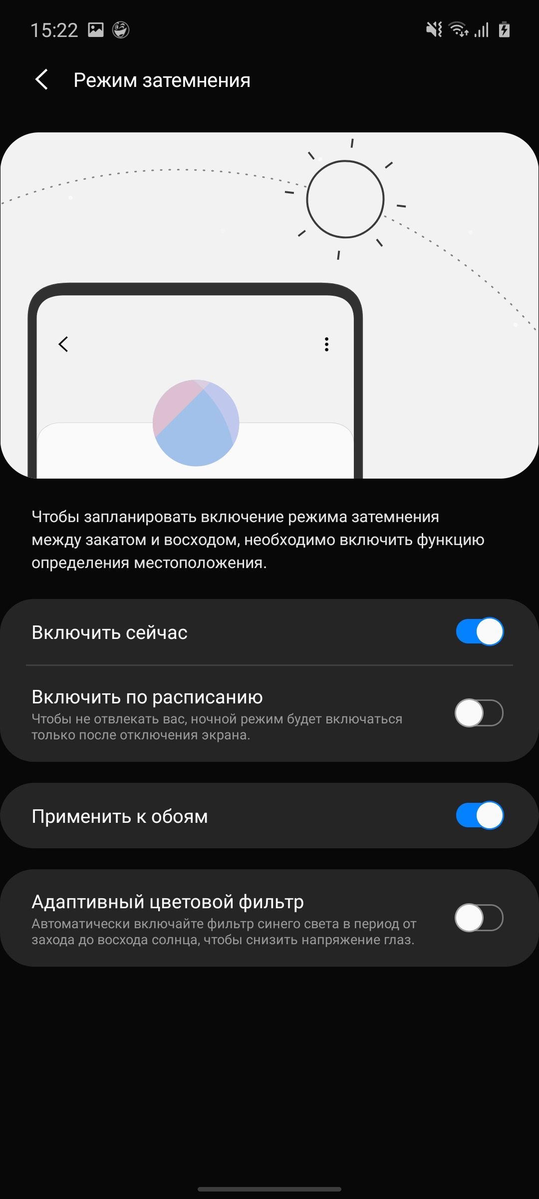 Galaxy Note10 Lite jest wyposażony w wyświetlacz Super AMOLED o przekątnej 6,7 cala i rozdzielczości 2400 × 1080. Nieco mniejszy niż Galaxy Note10 + (6,8 cala) i większy niż Galaxy Note10 (6,3 cala), ale proporcje nowości są bardziej wydłużone: 20: 9 zamiast 19: 9. Gęstość pikseli wynosi 394 ppi, czyli nieco mniej niż w Note10 przy 401 ppi. W ustawieniach znajduje się standardowy zestaw: regulacja jasności, wybór rozmiaru czcionki, skala elementów interfejsu, niebieski filtr, ciemny motyw interfejsu, Always on Display, oświetlenie krawędzi (po otrzymaniu powiadomień) oraz dwa tryby wyświetlania kolorów: „naturalny” i „nasycony”. Ten ostatni ma możliwość regulacji temperatury barwowej. To wszystko, co widzieliśmy w poprzednich modelach Samsunga. Co ciekawsze, dostępna jest teraz ochrona przeciw migotaniu (ściemnianie DC w niektórych smartfonach). Wygląda na to, że pojawiła się z nową wersją oprogramowania. Ale nie ma tego w ustawieniach: działa domyślnie i nie można ją wyłączyć. Chociaż nie widzę wiele powodów, aby ją wyłączyć.