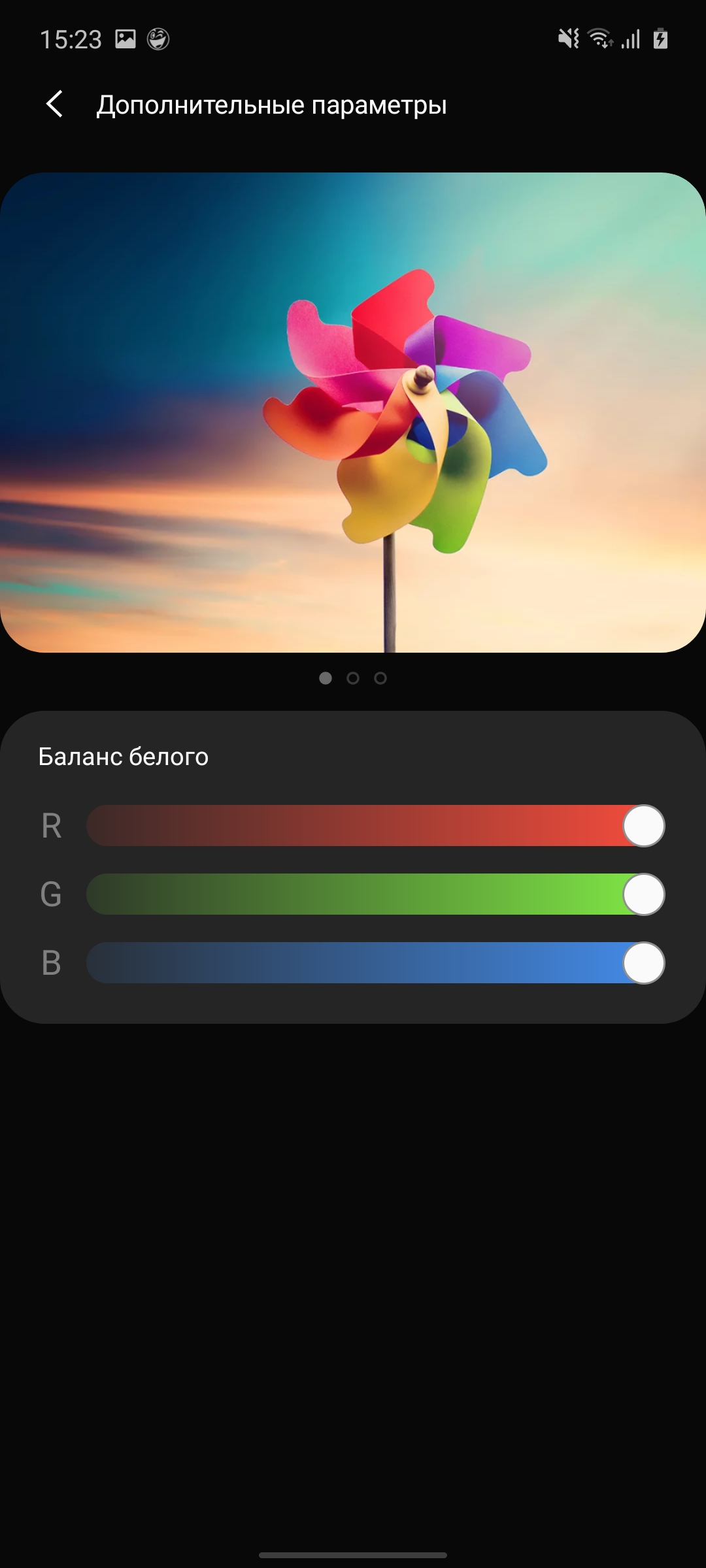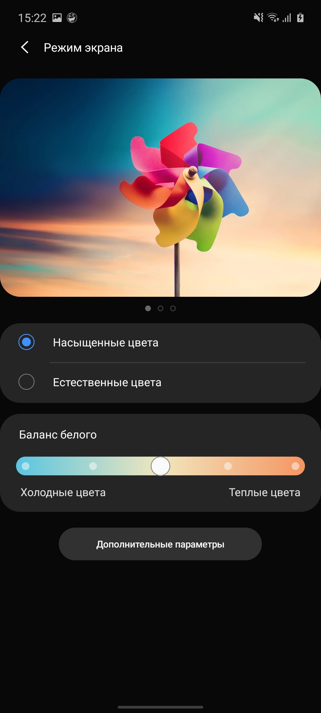 W trybie „nasyconym” maksymalna jasność ekranu jest nieco wyższa niż 398,897 cd / m2. "Wylatuje" nieco do zimnych odcieni, ale także na rozsądną miarę. Gama kolorów jest znacznie szersza niż sRGB, jak we wszystkich AMOLED: