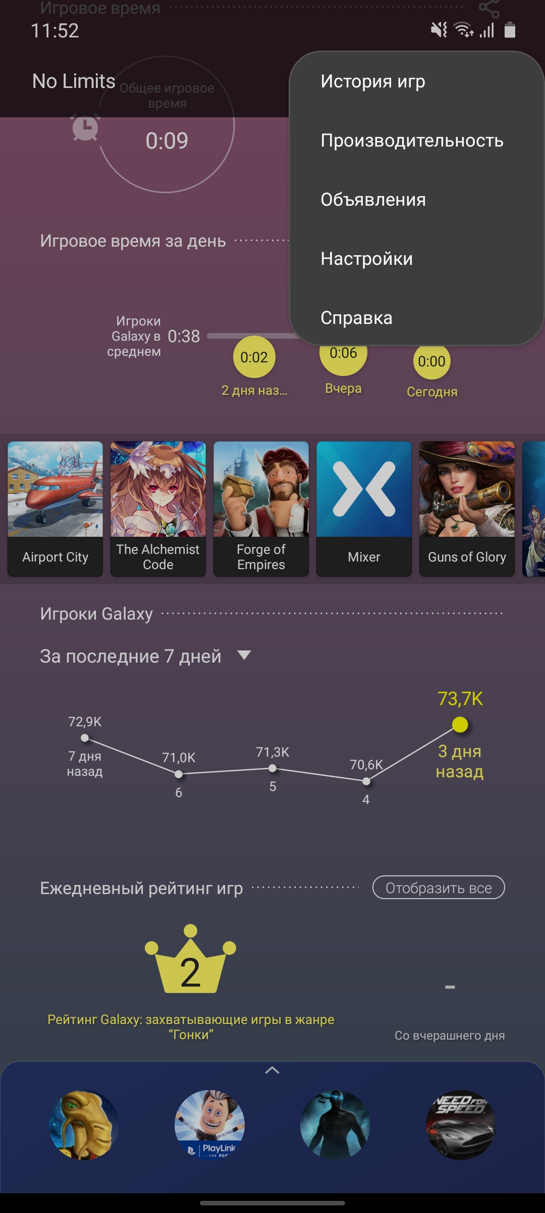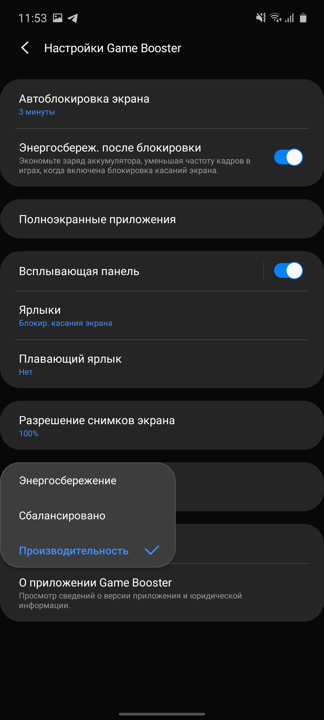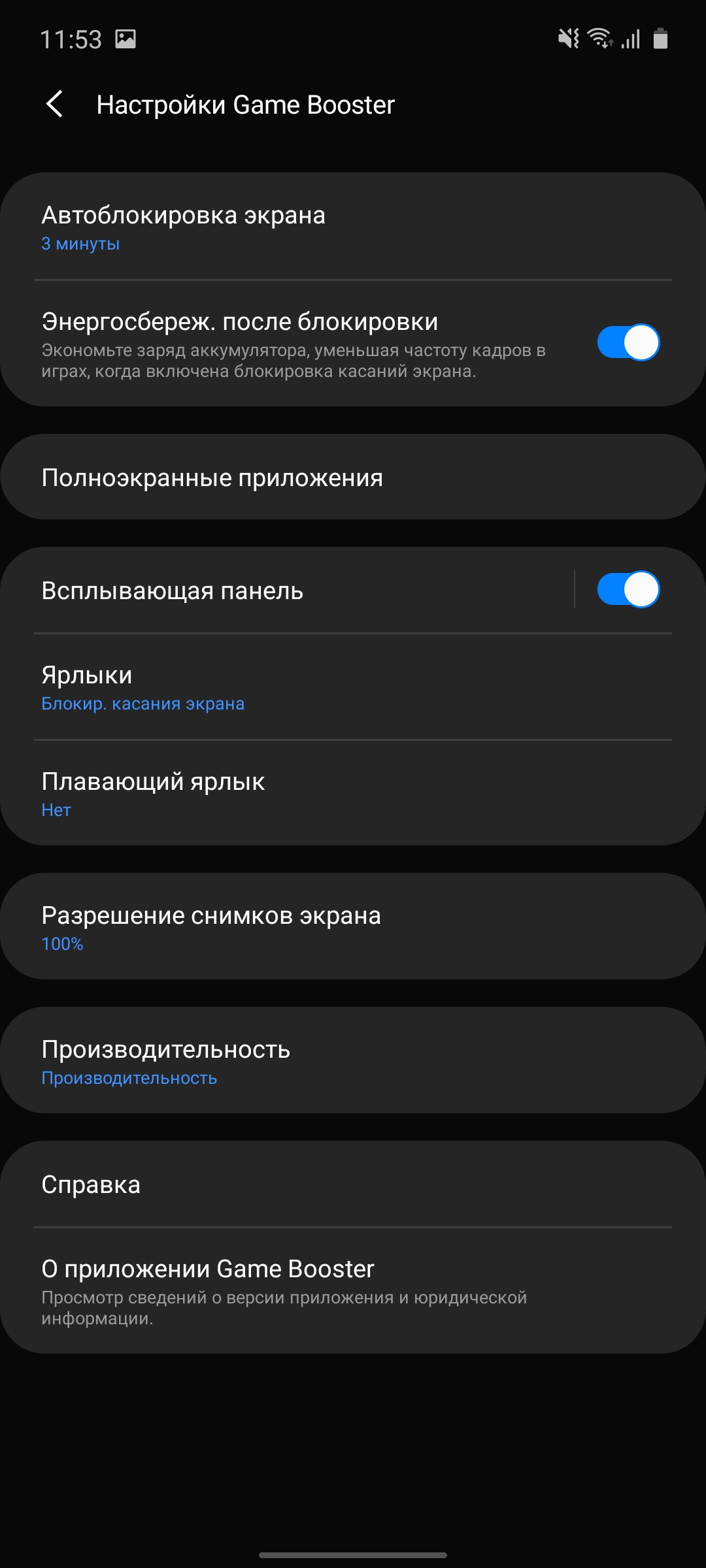 Game Launcher i nakładka Game Booster są podobne. Rzeczywiste modele, które były już w naszych recenzjach. Aplikacja pozwala dostroić wydajność (w razie potrzeby dla każdej gry), wyłączyć powiadomienia podczas gry, zbierać statystyki czasu w grach, robić zrzuty ekranu i nagrywać filmy: