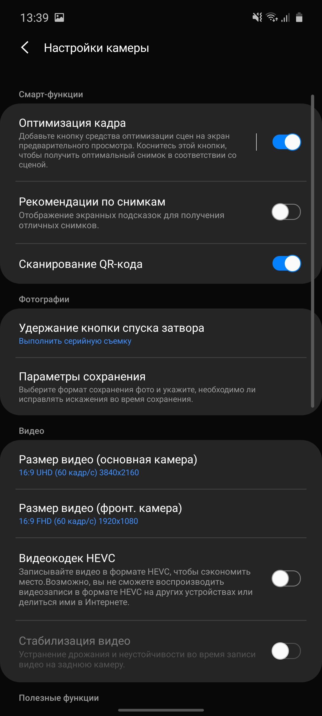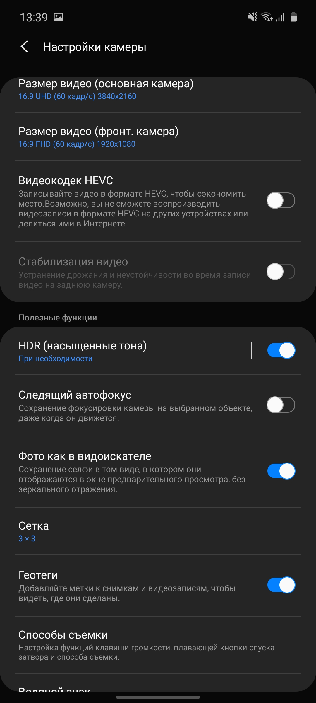 Jeśli chodzi o samą aplikację kamery, w One UI 2.0 nieco się zmieniła, chociaż zmiany nie są dramatyczne. Wszystkie podstawowe elementy sterujące na ich zwykłych miejscach. Tryby tradycyjnie przewijane. Modne jest ich konfigurowanie: dodawaj te, których potrzebujesz, niepotrzebne - usuwaj. Jest do tego osobne menu. Na ekranie głównym znajdują się ustawienia lampy błyskowej, minutnik, format obrazu, włącz stabilizator (w filmie), przejdź do wszystkich ustawień i utwórz animowane zdjęcia. Przełącznik kamery znajduje się obok przycisku migawki, co jest wygodne i logiczne. Istnieje w pełni ręczny tryb Pro.