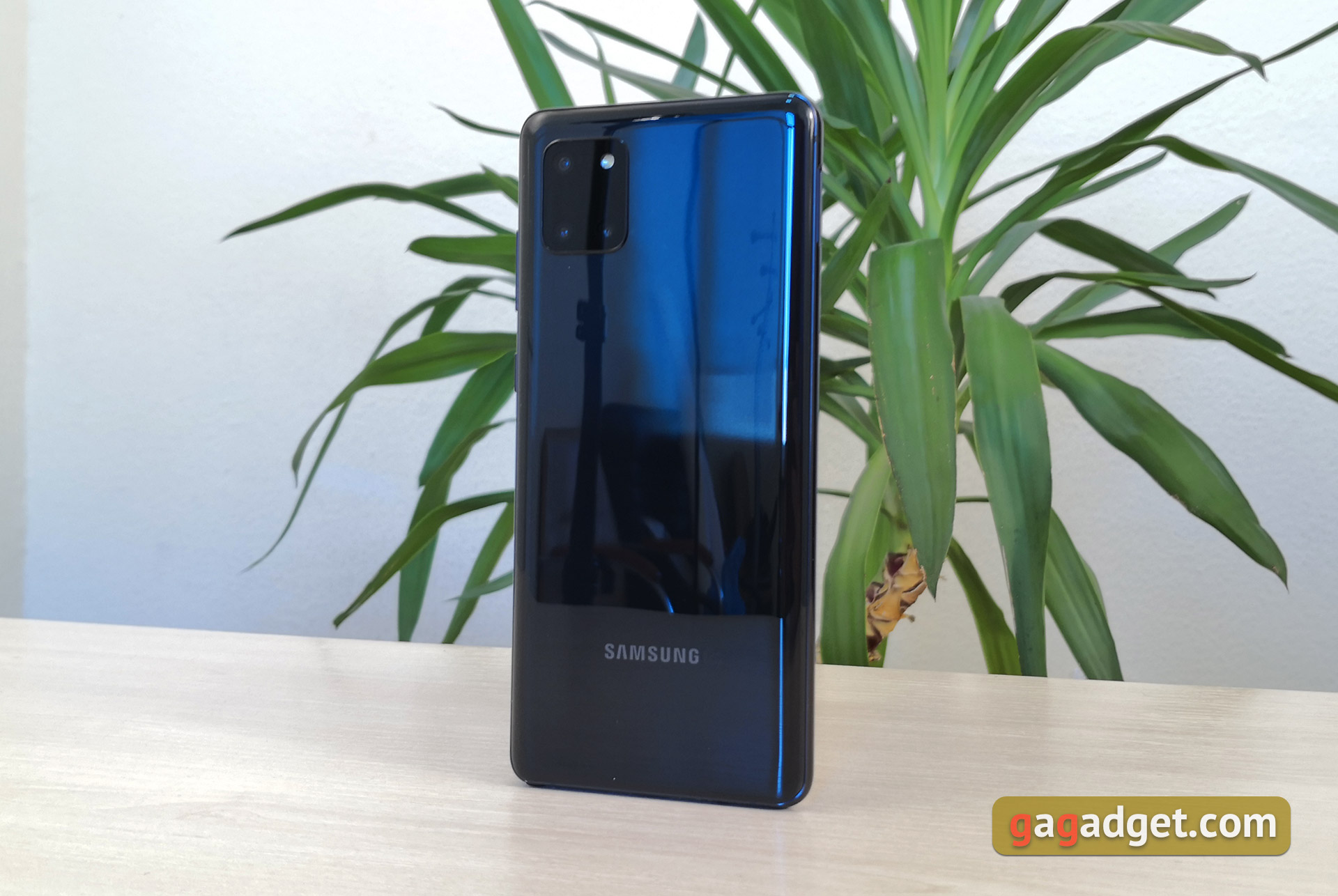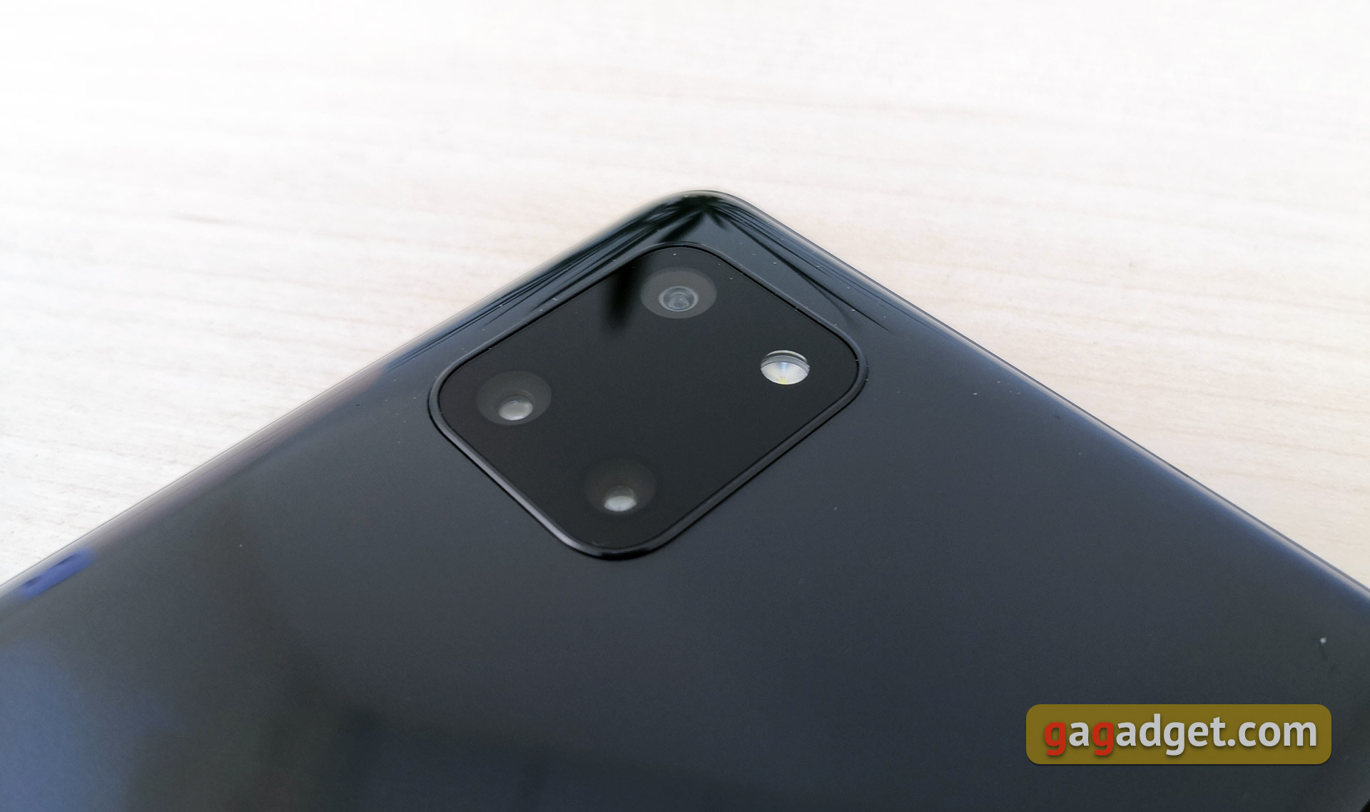 Główna potrójna kamera została umieszczona w czarnym prostokącie z zaokrąglonymi narożnikami. Konstrukcja przypomina linię Google Pixel 4 lub iPhone 11, ale w Galaxy Note10 Lite praktycznie nie wystaje i wygląda ładniej niż w powyższych modeli. We wszystkich opcjach kolorystycznych kamera jest czarna, a w przypadku czarnej obudowy prawie nie jest widoczna.