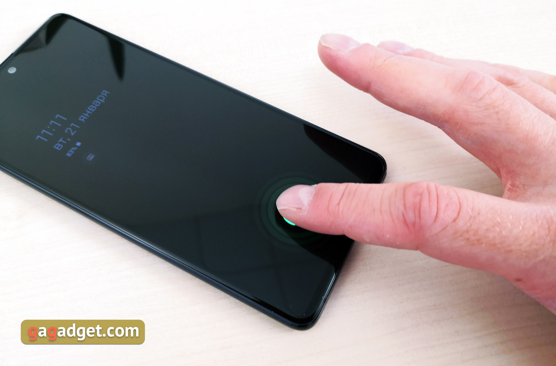 Do odblokowania smartfona dołączono standardowy nowoczesny zestaw. Identyfikacja za pomocą twarzy właściciela, oczywiście wyłącznie za pomocą kamery przedniej. Tak więc tej metody nie można nazwać zbyt bezpieczną, ale oczywiście nie będzie zbędna w zimie, gdy dłonie są w rękawiczkach. I skaner linii papilarnych na ekranie. W przeciwieństwie do flagowych stosowana jest raczej opcja optyczna niż ultradźwiękowa. Ale działa bardzo dobrze: dokładnie i dość szybko. Nie błyskawicznie, ale w wygodnych granicach.