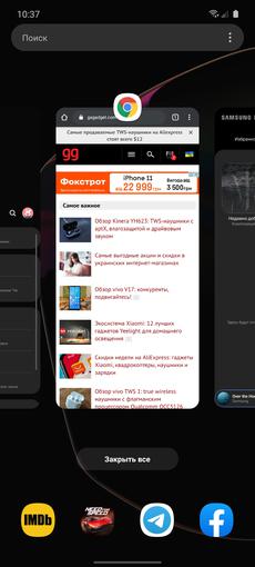W poprzedniej wersji One UI były dwie opcje nawigacji: standardowy pasek przycisków i nawigacja gestami. Ale ten ostatni był w rzeczywistości duplikacją tych samych przycisków, tyle że nie musiałeś je wyciskać, ale przeciągać z pożądanej części dolnej krawędzi ekranu do gury. Teraz dodano wygodniejszą opcję nawigacji gestami, tak jak w nowym Androidzie 10. Wstecz - ruch z prawej lub lewej krawędzi ekranu, strona główna - od dołu, menedżer aplikacji - również pociągnij od dolnej krawędzi i przytrzymaj palec. Ta opcja wydaje mi się wygodniejsza i bardziej logiczna.
