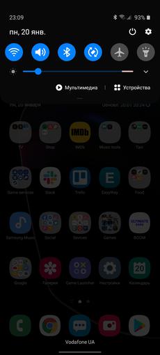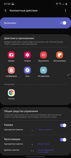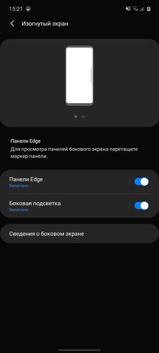 Co ciekawe, pomimo braku zakrzywionych boków wyświetlacza, panel Edge pozostał w smartfonie. Ponadto w ustawieniach znajduje się w pozycji „Zakrzywiony ekran”. Ale ogólnie rzecz biorąc, funkcjonalność jest już znana. Jest to zestaw szybkich narzędzi uruchamianych przez ruch od krawędzi ekranu w miejscu, w którym znajduje się odpowiedni znak. Panele można dostosowywać, pobierać i dodawać dodatkowe. Istnieją różnego rodzaju kompasy, linijki, latarki, lista szybkich kontaktów, odtwarzacz muzyki, schowek do wymiany i tak dalej.