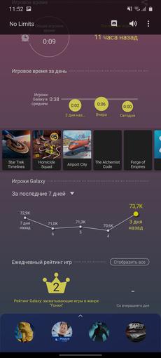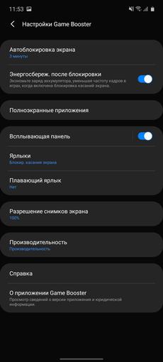 Game Launcher i nakładka Game Booster są podobne. Rzeczywiste modele, które były już w naszych recenzjach. Aplikacja pozwala dostroić wydajność (w razie potrzeby dla każdej gry), wyłączyć powiadomienia podczas gry, zbierać statystyki czasu w grach, robić zrzuty ekranu i nagrywać filmy: