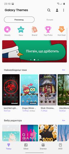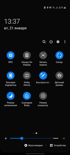Samsung Galaxy Note10 Lite działa na Androidzie 10 ze zaktualizowaną powłoką One UI w wersji 2.0. Nie ma wielu zmian w porównaniu do poprzedniej wersji. Ogólna logika i stylizacja pozostały takie same. Cały interfejs jest przerysowany w swoim własnym stylu, wciąż są chipy dla wygody zarządzania jedną ręką na dużych ekranach. W większości menu systemowych i na pełnej kurtynie (nawiasem mówiąc, można wywoływać ją w dowolnym miejscu na ekranie, a nie tylko od górnej krawędzi), elementy interfejsu są przesunięte na dolną część wyświetlacza. Aby łatwiej dotrzeć palcem. Domyślnie są pulpity i osobne menu aplikacji, ale możesz je wyłączyć i przesłać wszystko tylko na pulpity. Istnieje tryb „uproszczony” z dużymi ikonami i pewnymi ograniczeniami funkcji. Różne motywy projektowe, tapety na żywo, w tym na ekranie blokady itp. Oprócz zrzutów ekranu istnieje teraz regularna możliwość nagrywania wideo z ekranu. Łącznie z nagrywaniem dźwięku na mikrofonie (na przykład do własnych komentarzy).