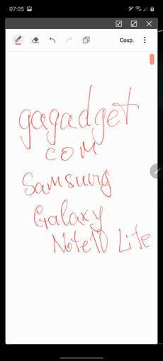 Rysik S Pen wydaje się migrować od Galaxy Note9. Może rozpoznać 4096 stopni nacisku, wyznaczyć nachylenie i jest wyposażony w jeden fizyczny przycisk. Istnieje mnóstwo różnych narzędzi do rysowania i szybkich notatek odręcznych. Istnieje możliwość wykonania zrzutu ekranu części ekranu z zapisywaniem i adnotacjami, wiadomościami GIF na żywo oraz tłumaczem. S Pen jest wyposażony w Bluetooth i wbudowaną baterię. Nie ma żyroskopu, ponieważ w Galaxy Note10 / 10 + dodatkowe gesty z rysikiem w powietrzu nie są obsługiwane, ale jako pilot zdalnego sterowania rysik może być używany z przyciskiem. Możesz przełączać utwory w odtwarzaczu, przewijać slajdy w prezentacjach, robić zdjęcia i tak dalej.