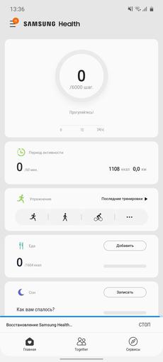 Nie ma wiele wstępnie zainstalowanych programów. Oprócz wspomnianego odtwarzacza, radia i innych niezbędnych aplikacji, istnieje narzędzie do optymalizacji smartfona (czyszczenie pamięci RAM, pamięci, diagnostyka), tradycyjny asystent Bixby, menedżer plików, notatki i S Health. Co ciekawe, S Health nie wydaje się być jeszcze zaktualizowany: interfejs pozostaje jasny w trybie ciemnego motywu interfejsu.