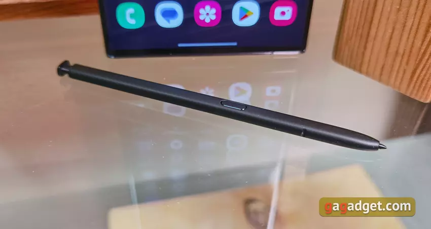 S Pen jest podobnie czarny i ma matowe wykończenie. Nie ma żadnych różnic konstrukcyjnych w stosunku do poprzedniego modelu. Posiada jeden przycisk fizyczny na korpusie.