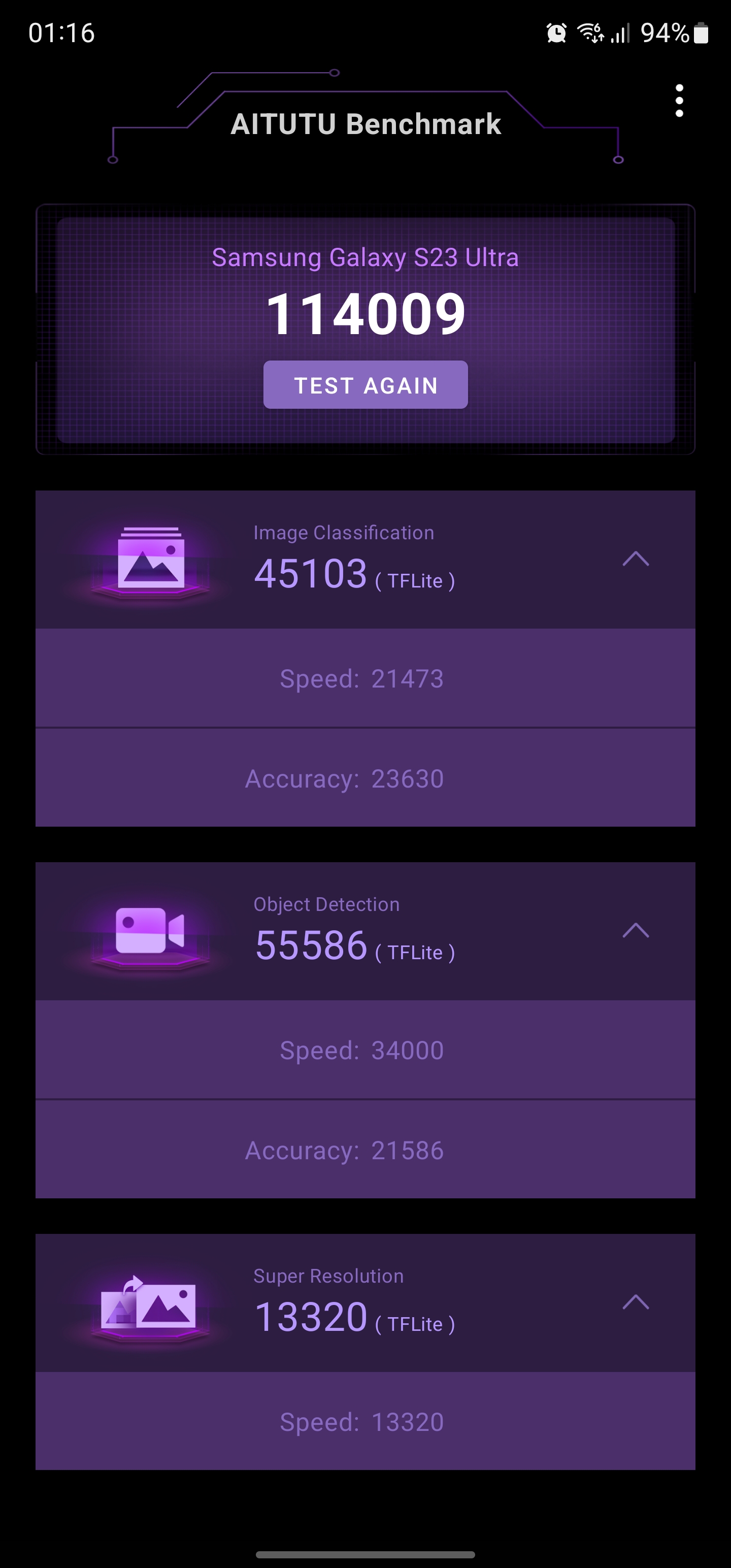 W tym roku flagowa linia smartfonów Samsunga ma w środku bardzo ciekawy sprzęt. Przez wiele lat niemal cały świat otrzymywał flagowce napędzane autorskimi procesorami Samsunga - Exynos, a tylko nieliczne rynki miały Snapdragona. Teraz sytuacja uległa zmianie, Samsung Galaxy S23 Ultra (jak i młodsze modele) otrzymał procesor Qualcomm Snapdragon 8 Gen 2 Mobile Platform for Galaxy. Jest to wersja flagowego Snapdragona 8 Gen 2 z najmocniejszym rdzeniem ARM Cortex-X3 podkręconym do 3,36 GHz (zamiast standardowych 3,19 GHz) i akceleratorem graficznym Adreno 740 do 719 MHz (zamiast 680 MHz). Wszystkie pozostałe cechy pozostały bez zmian, więc Qualcomm Snapdragon 8 Gen 2 wykorzystuje schemat 1+2+2+3 rdzenie. Oprócz Cortex X3 procesor zawiera dwa rdzenie Cortex-A715 2,8 GHz, dwa rdzenie Cortex-A710 2,8 GHz i trzy rdzenie Cortex-A510 2 GHz. Procesor jest wytwarzany w technologii procesowej 4 nm. Najważniejsze zalety w porównaniu z modelem Snapdragon 8 Gen 1 to 35% wzrost wydajności i 40% wzrost efektywności energetycznej procesora. Jak również 25% wzrost wydajności i 45% wzrost efektywności energetycznej dla akceleratora graficznego. Dodatkowo warto zauważyć, że procesor wspiera ray tracing w czasie rzeczywistym. Trudno jednak jeszcze powiedzieć, jak bardzo technologia ta będzie rozpowszechniona w grach mobilnych. Pamięć RAM może wynosić 8 lub 12 GB LPDDR5X. Pamięć wewnętrzna może wynosić 256/512 GB lub 1 TB i co ważne, wykorzystuje nowy szybki standard UFS 4.0. W teście dysk wykazał bardzo wysokie wyniki: około 3400 MB/s przy odczycie danych i 1900 MB/s przy zapisie. Ogólnie rzecz biorąc, Samsung Galaxy S23 Ultra wykazuje bardzo wysokie wyniki w testach syntetycznych i jest jednym z najmocniejszych obecnie smartfonów: