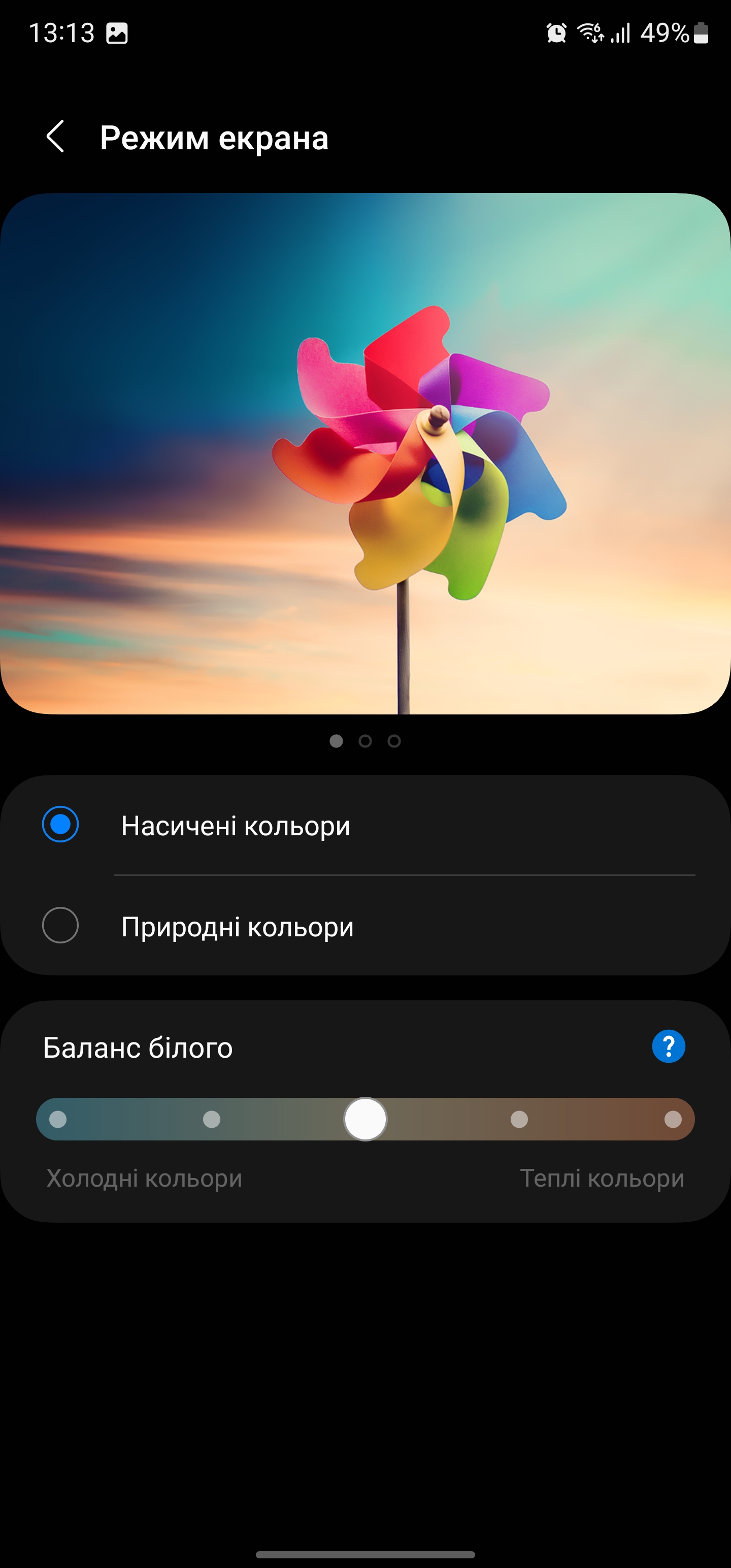 W trybie "Naturalnym" odwzorowanie kolorów nie jest tak dokładne, a gama barw jest zbliżona do sRGB. Jednocześnie jasność jest nieco niższa: 658,171 cd/m2.