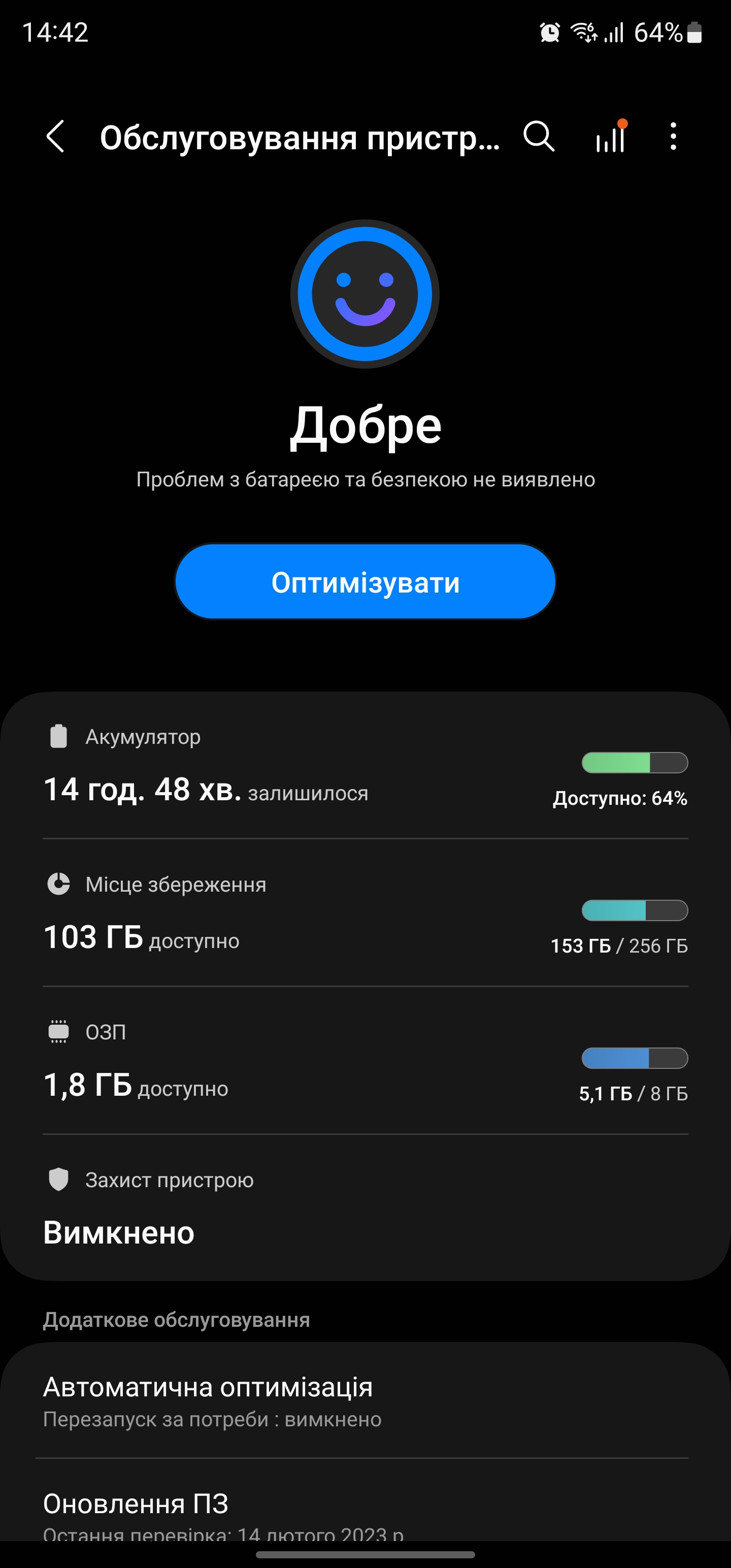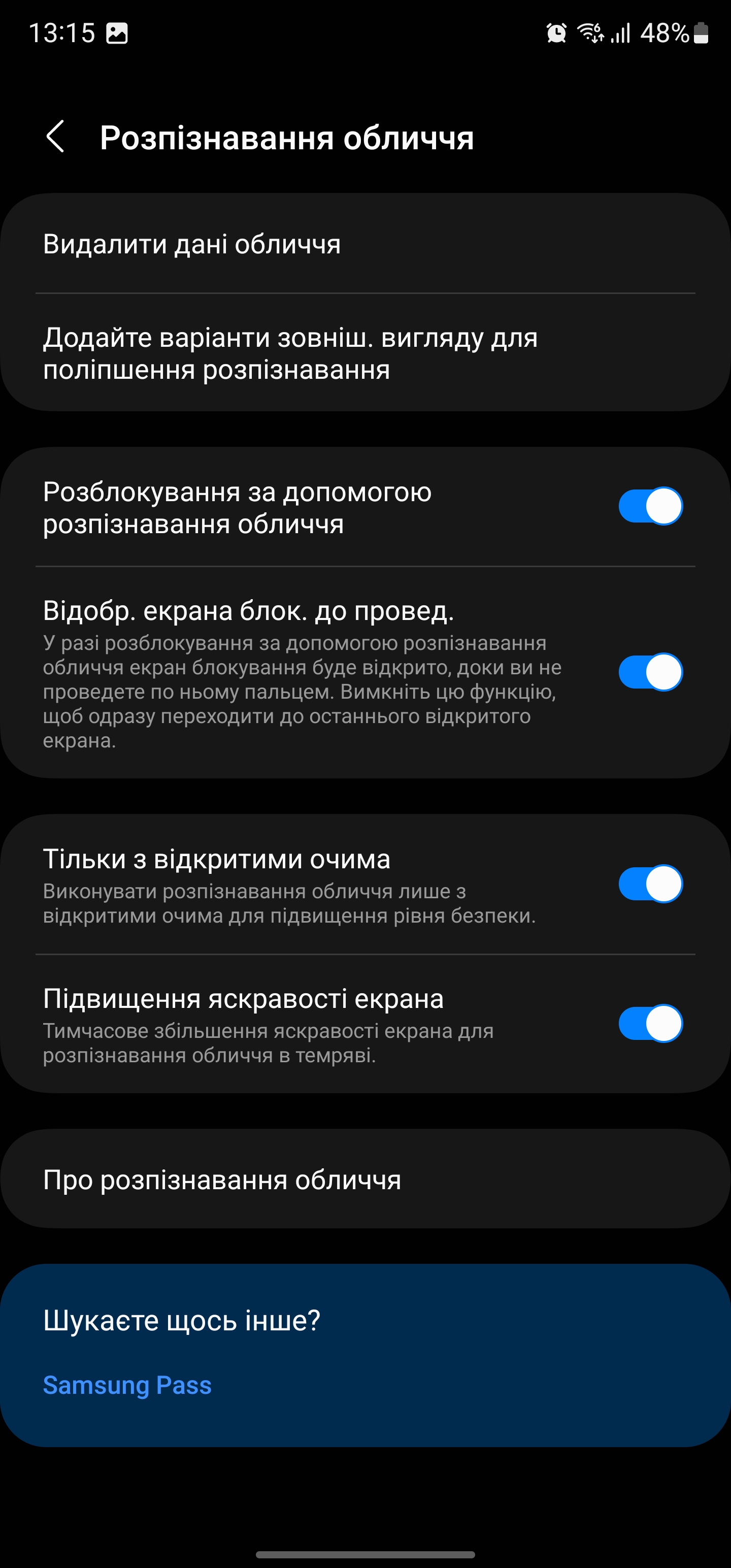 Samsung Galaxy S23 Ultra wykorzystuje ultradźwiękowy skaner linii papilarnych w ekranie. Podczas użytkowania smartfona nie wystąpił ani jeden błąd rozpoznania. Szybkość skanowania jest duża, niemal podobna do tradycyjnych skanerów pojemnościowych. Za rozpoznawanie twarzy odpowiada przednia kamera, więc szybkość zależy od oświetlenia. Dodatkowe ustawienia obejmują zapobieganie rozpoznawaniu, gdy oczy są zamknięte i zwiększanie jasności wyświetlacza przy słabym oświetleniu, a także możliwość rejestrowania dodatkowych cech twarzy w celu szybszego rozpoznawania.