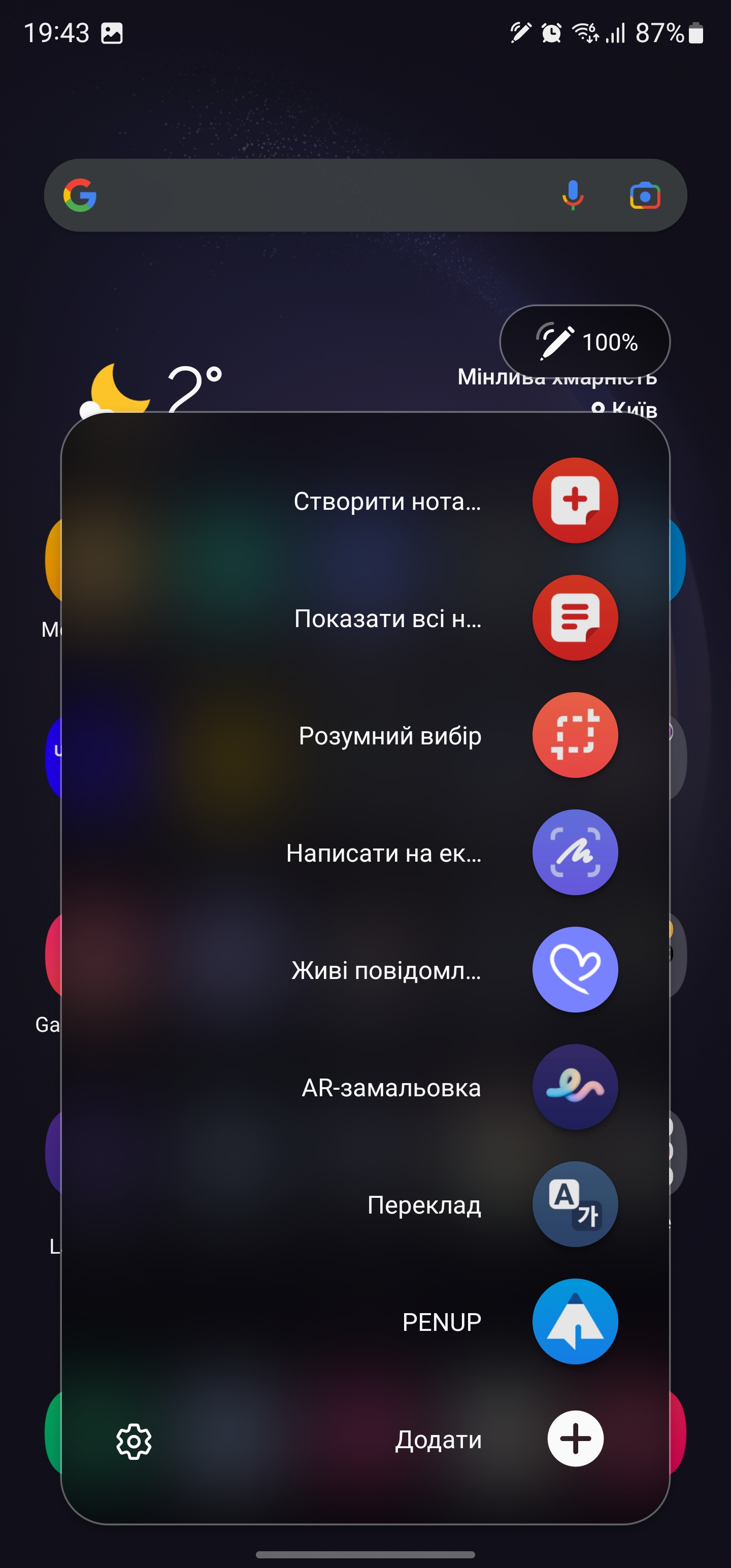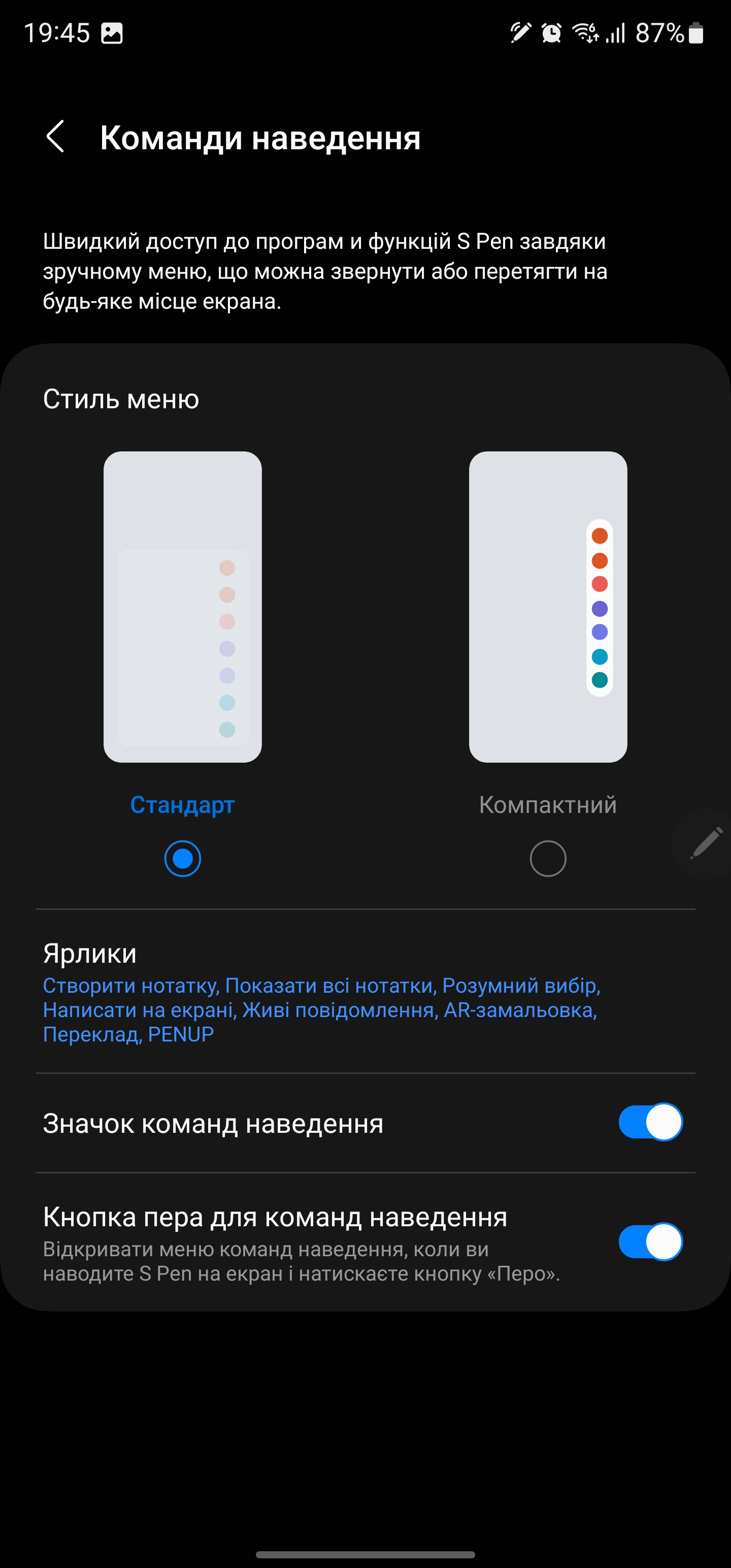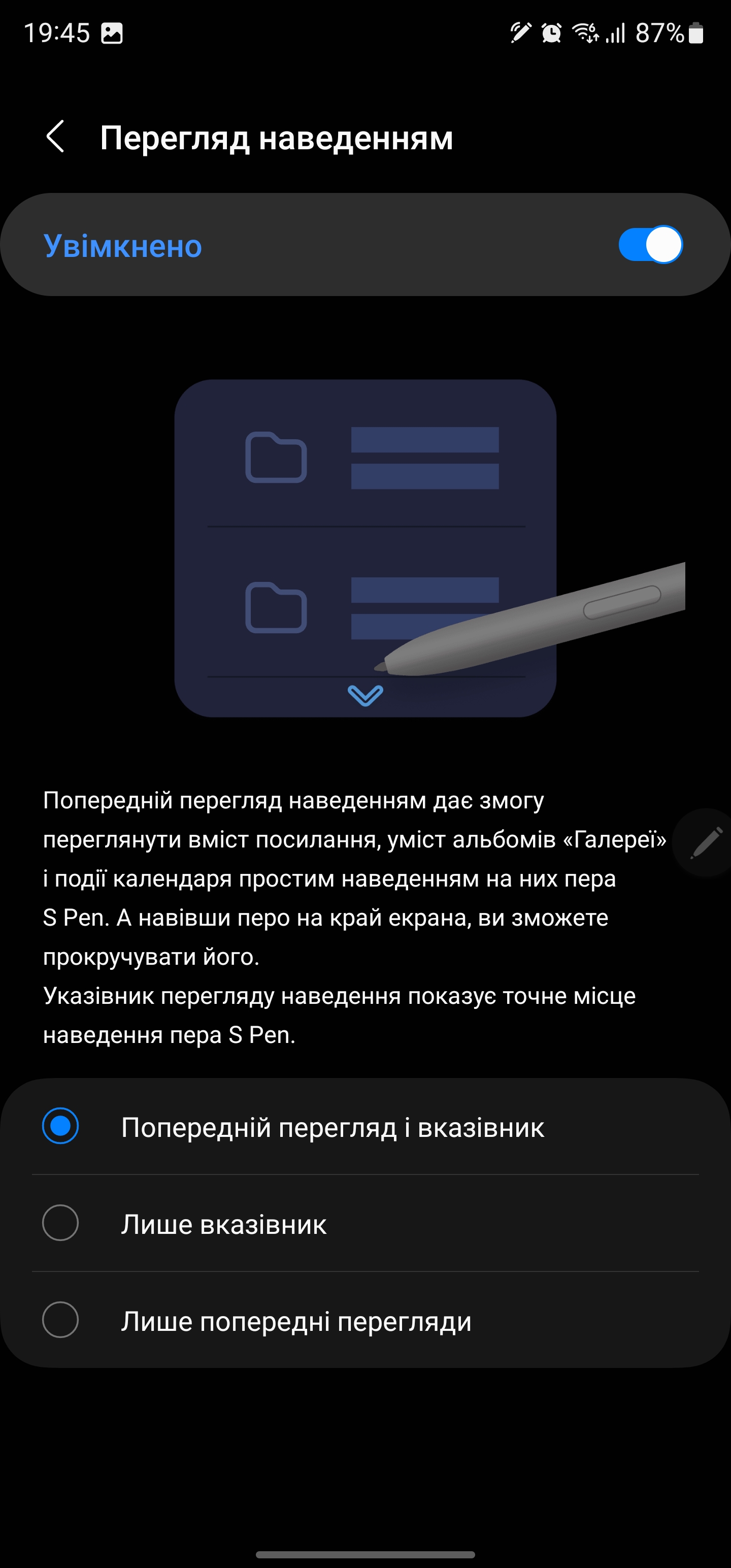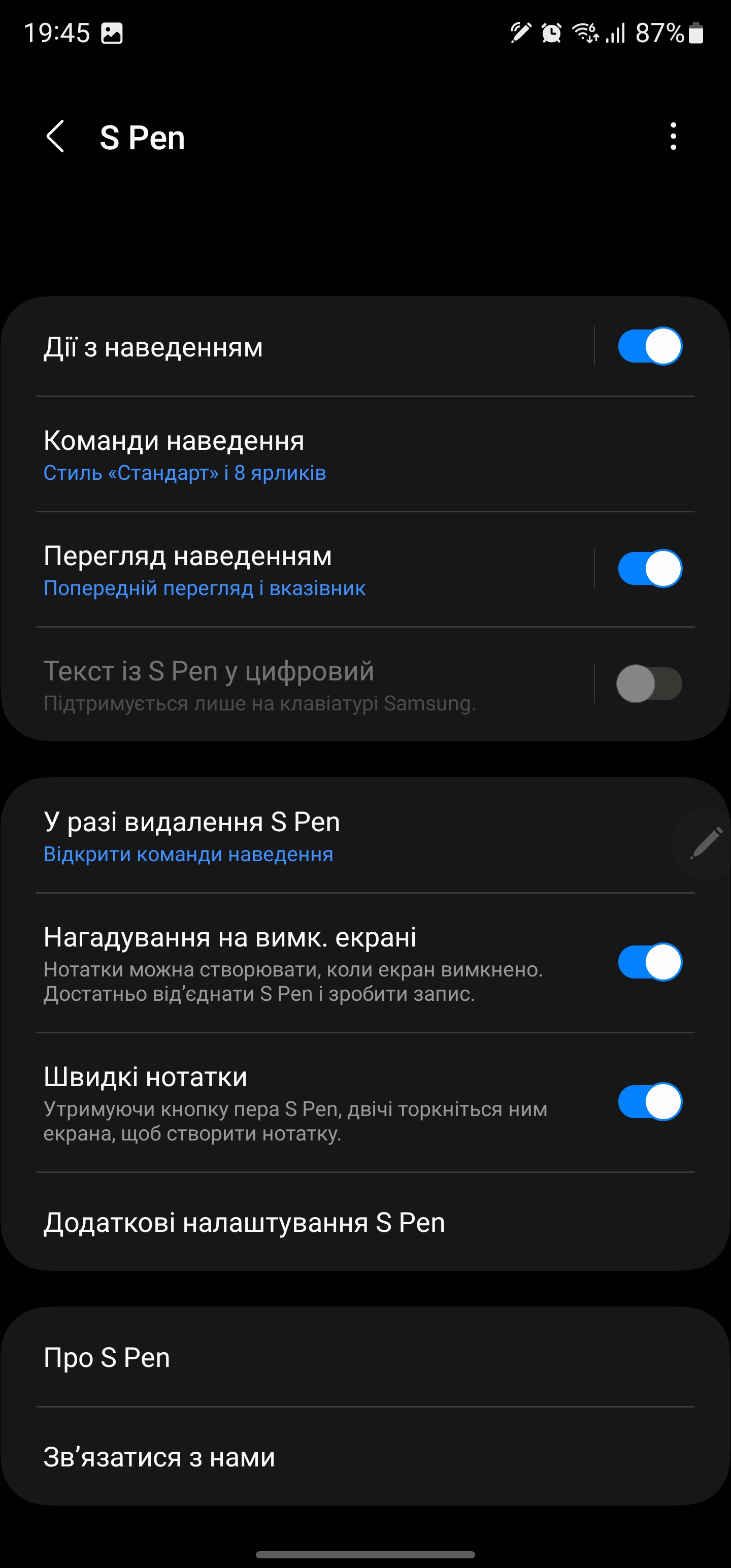 S Pen może być używany jako pilot. W różnych aplikacjach można ustawić różne gesty z rysikiem w powietrzu: przełączanie utworów, pauza, odtwarzanie w odtwarzaczu, zoom, przełączanie kamer i trybów w aparacie itp.