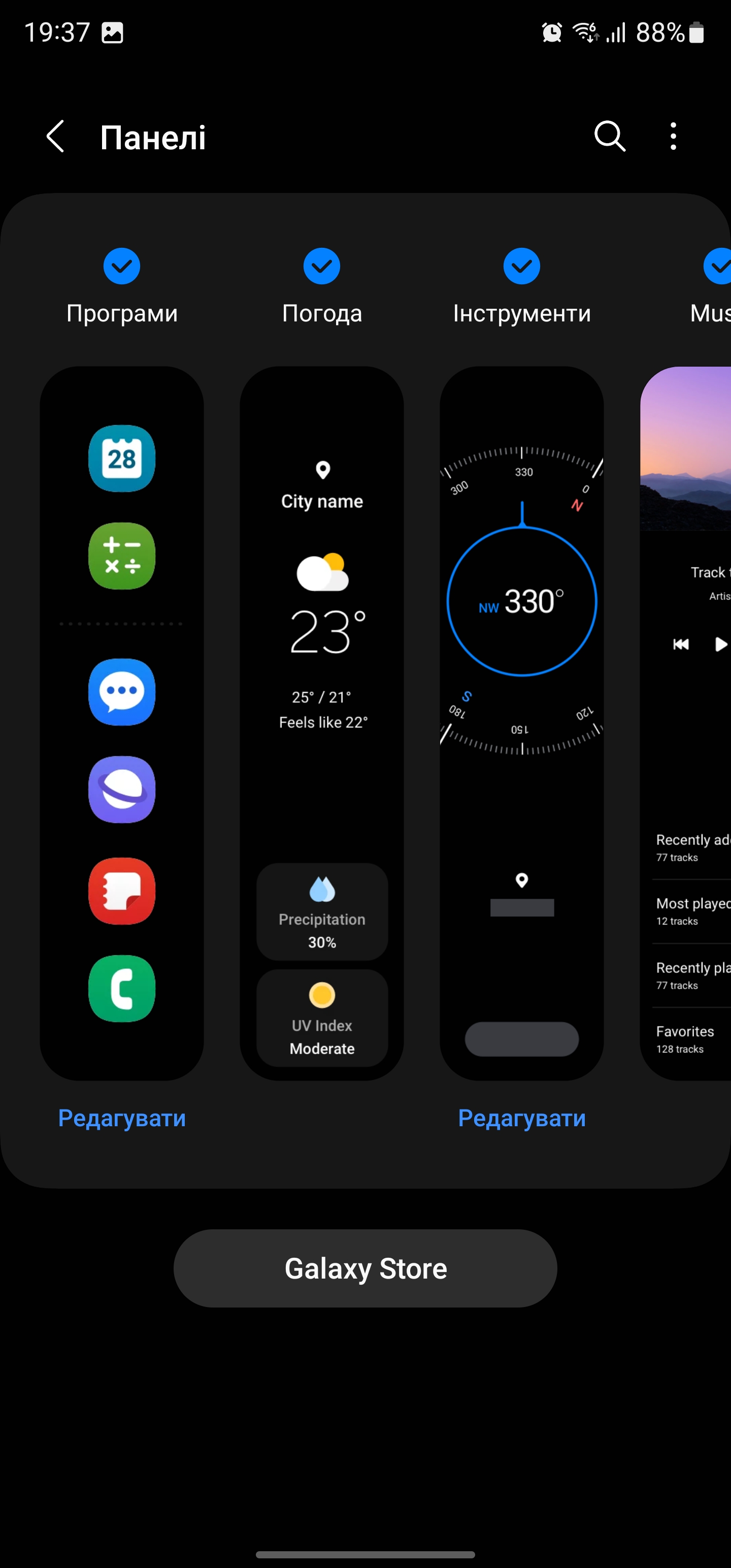 Podstawowa logika powłoki pozostaje niezmieniona. Są zwykłe pulpity i osobne menu ze wszystkimi aplikacjami (można je wyłączyć), widżety, kurtyna i tryb prosty.