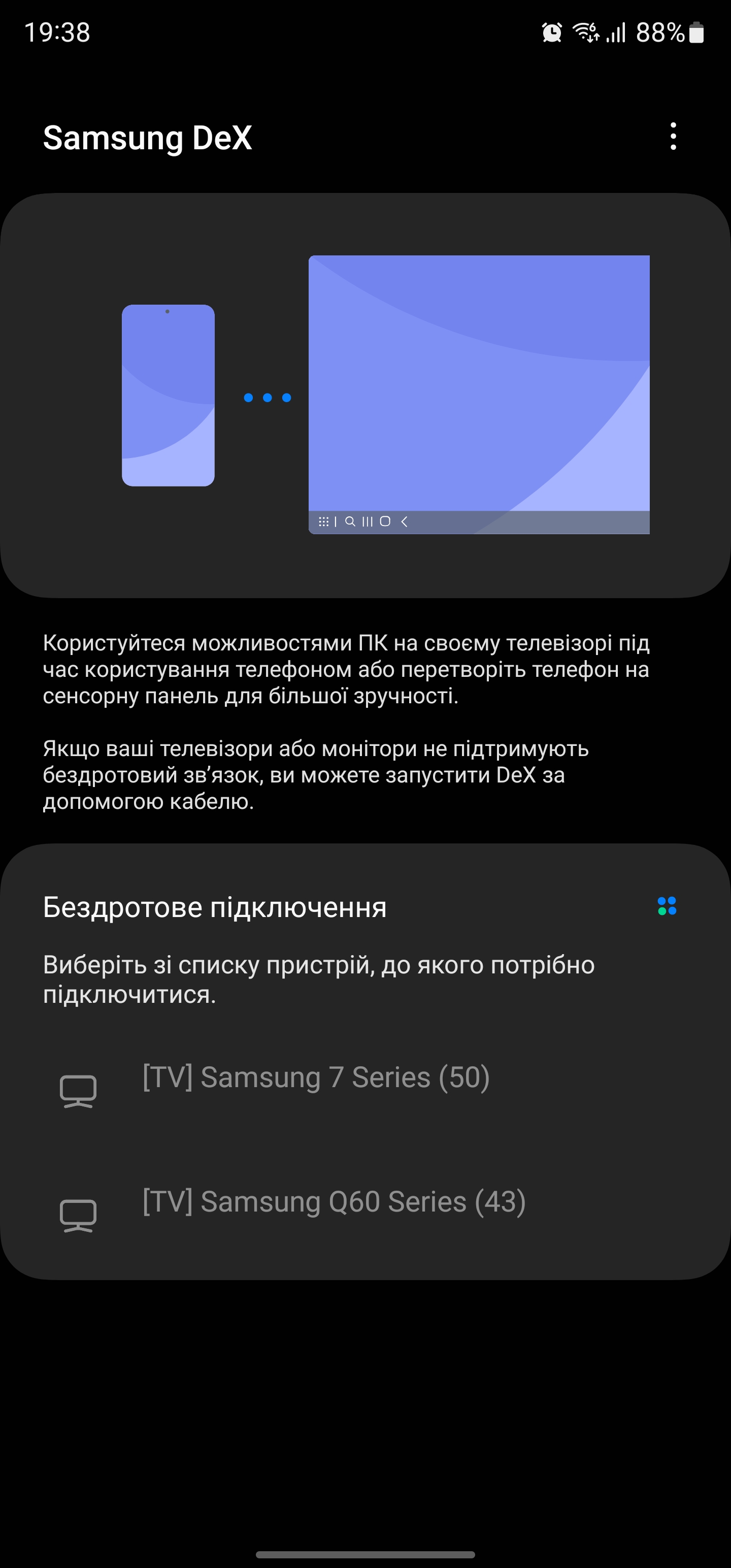 Tryb pulpitu Dex obsługuje połączenie z monitorami, telewizorami i komputerami PC zarówno przez kabel, jak i przez Miracast.