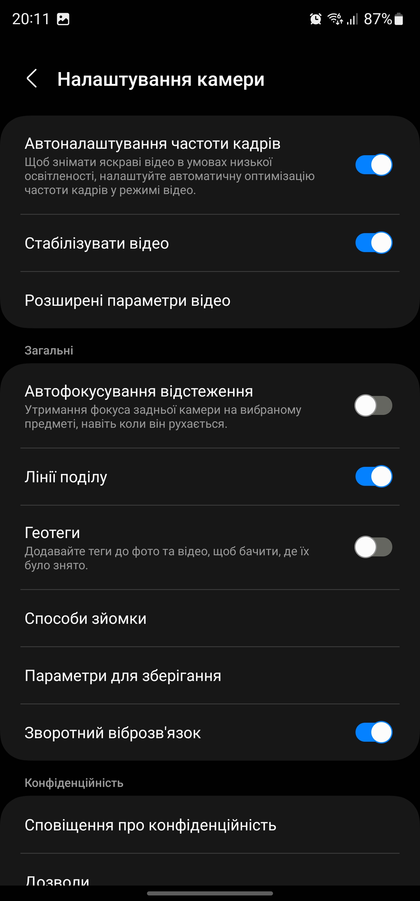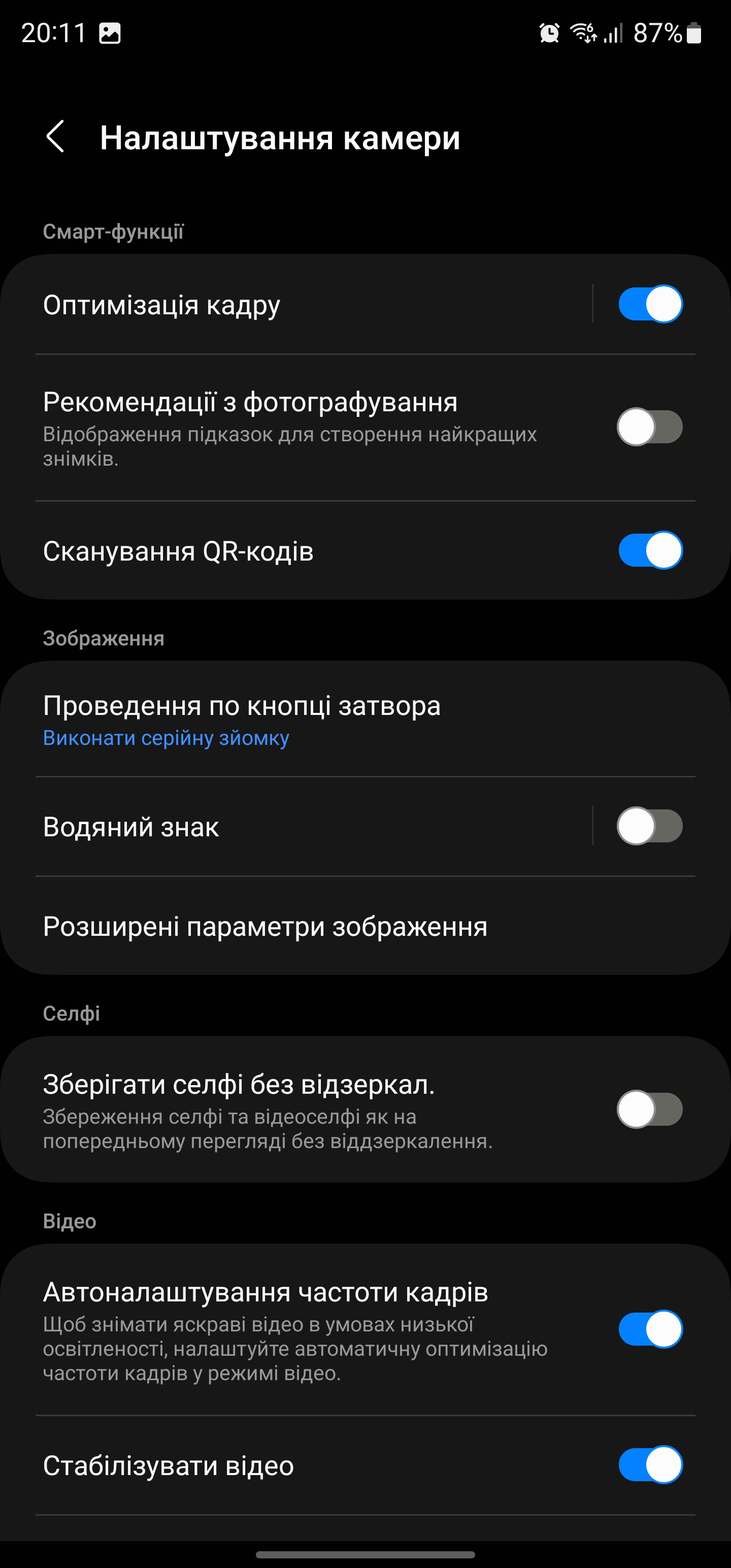 Aplikacja aparatu ma zwykły wygląd i sposób działania. Karuzela trybów jest konfigurowalna: możesz wybrać żądane tryby z sekcji Więcej. Wszystkie główne elementy sterujące znajdują się na ekranie głównym, w tym ustawienia lampy błyskowej, współczynnik proporcji, rozdzielczość i stabilizator wideo, timer, automatyczne ulepszanie i przełączanie między głównymi aparatami.