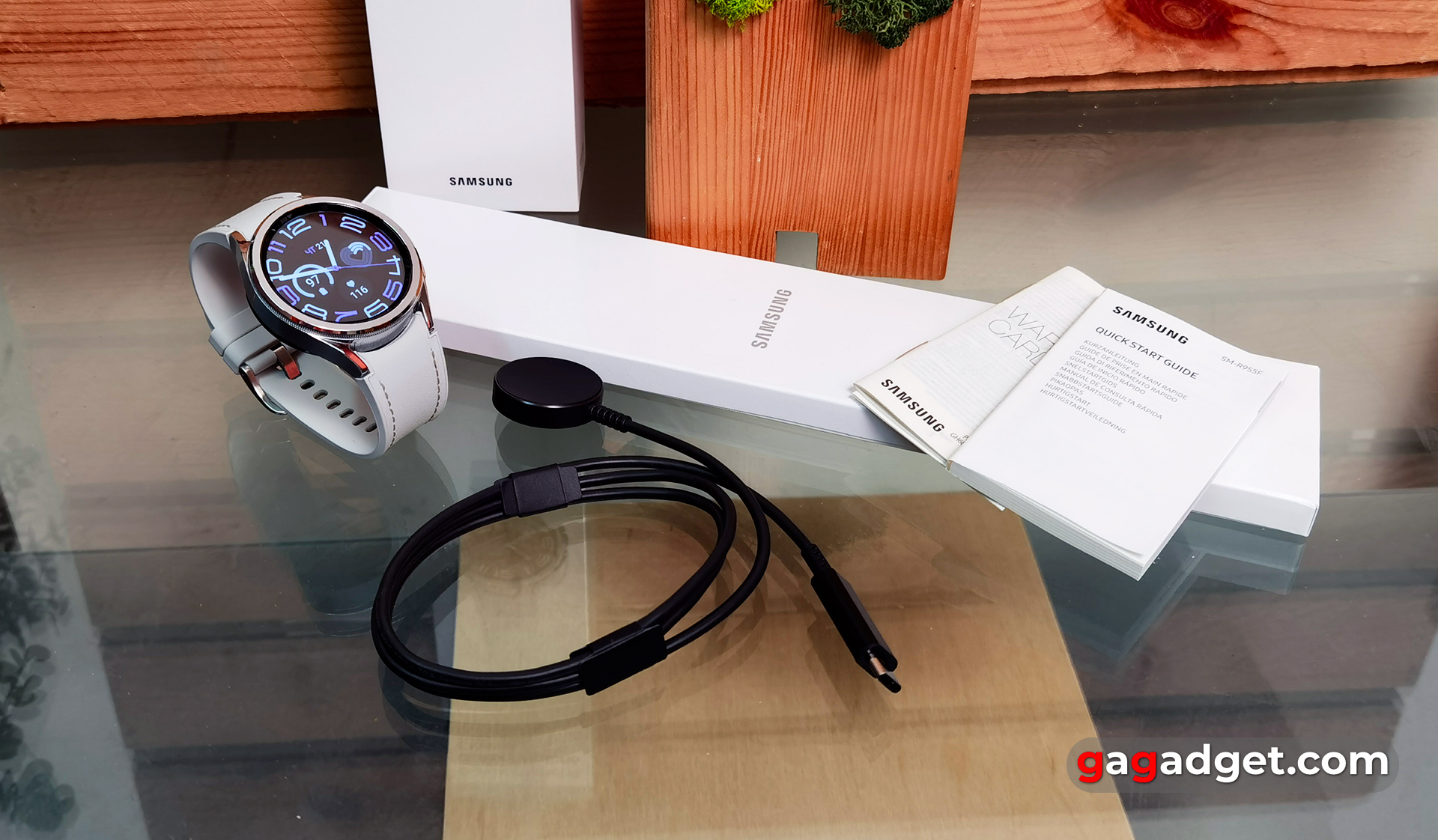 Opakowanie smartwatchów Samsung nie uległo zmianie. Galaxy Watch6 Classic zapakowany jest w małe, długie, białe kartonowe pudełko ze zdjęciem zegarka. Wewnątrz znajduje się Samsung Galaxy Watch6 Classic, ładowarka i dokumentacja. Ładowarka jest podobna do poprzednich modeli. Jest to mały krążek z metalowym korpusem i plastikową górą. Kabel ma złącze typu C, jest zamocowany na stałe i nie można go wymienić.
