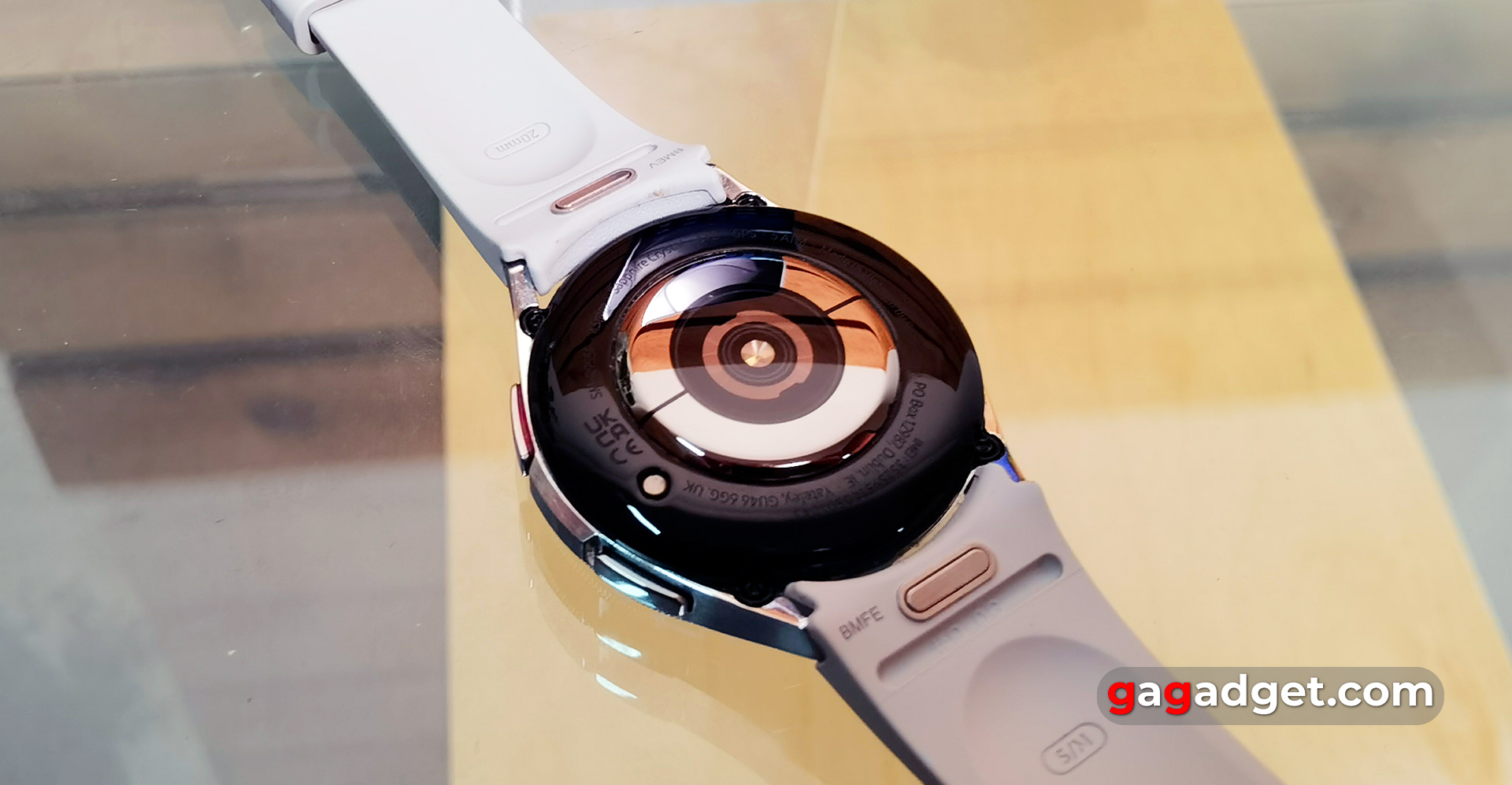 Tył zegarka wykonany jest ze szkła i ceramiki i posiada wiele funkcjonalnych elementów. Biosensory Samsung BioActive, optyczny czujnik tętna i czujnik temperatury na podczerwień oraz otwór odciążający. Czujnik temperatury na podczerwień służy do pomiaru różnych wskaźników stanu ciała. Na przykład podczas snu. Samsung Galaxy Watch6 Classic nie posiada jednak funkcji pomiaru temperatury. Co więcej, pomiar w takim miejscu nie będzie zbyt reprezentatywny. Firma otworzyła jednak API dla czujnika temperatury, dzięki czemu programiści mogą go używać w swoich aplikacjach.