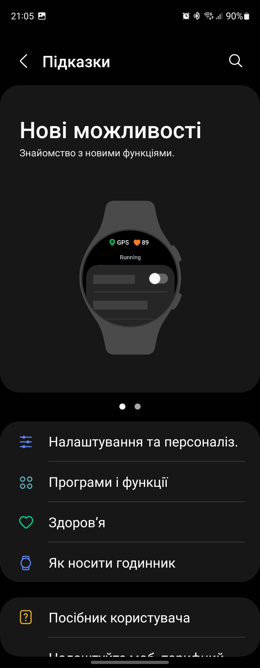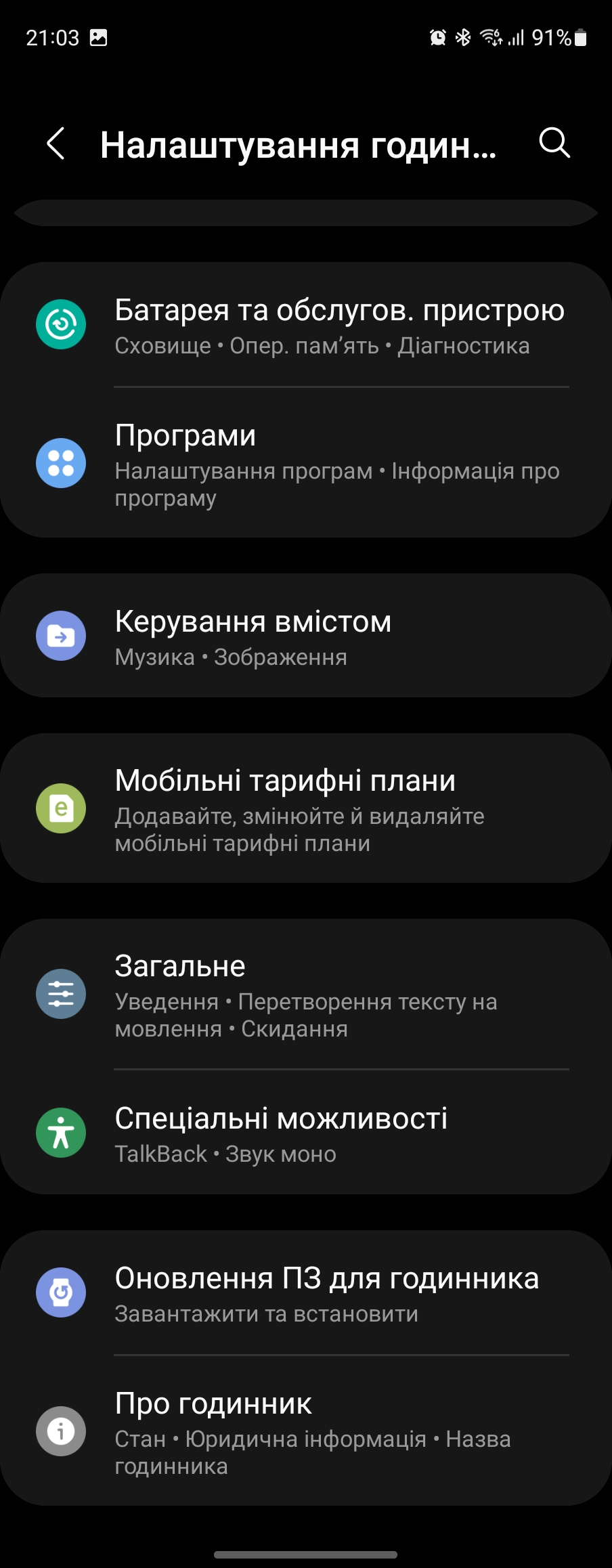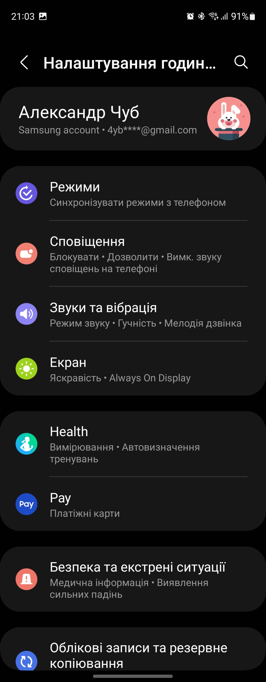 Ustawienia zegarka są dość wygodne i przejrzyste. Dostępne są ustawienia połączeń bezprzewodowych, powiadomień, trybów (nowa funkcja, która pozwala automatycznie wyłączyć niektóre powiadomienia, włączyć mapy i zmniejszyć jasność zgodnie z ustawieniami), ekranu, dźwięków i wibracji, automatycznego pomiaru tętna, poziomu tlenu we krwi, snu, temperatury, treningu, dodatkowych gestów i aktualizacji oprogramowania.