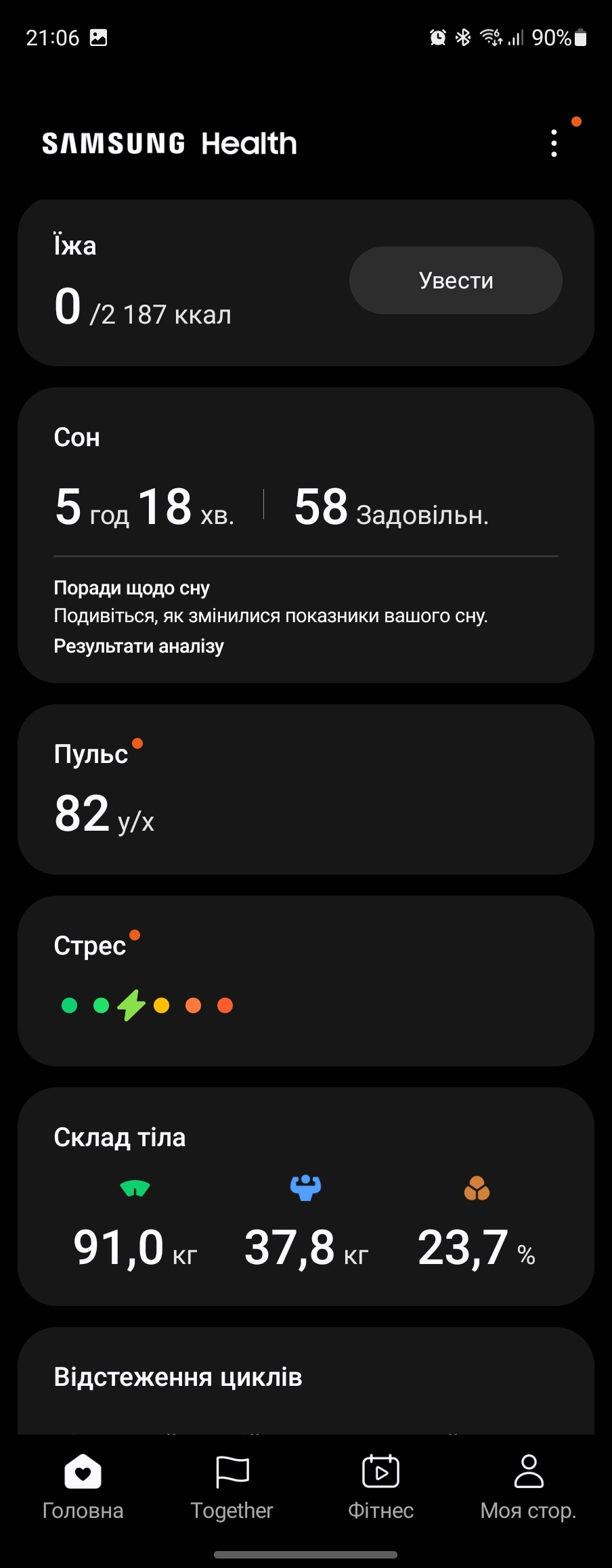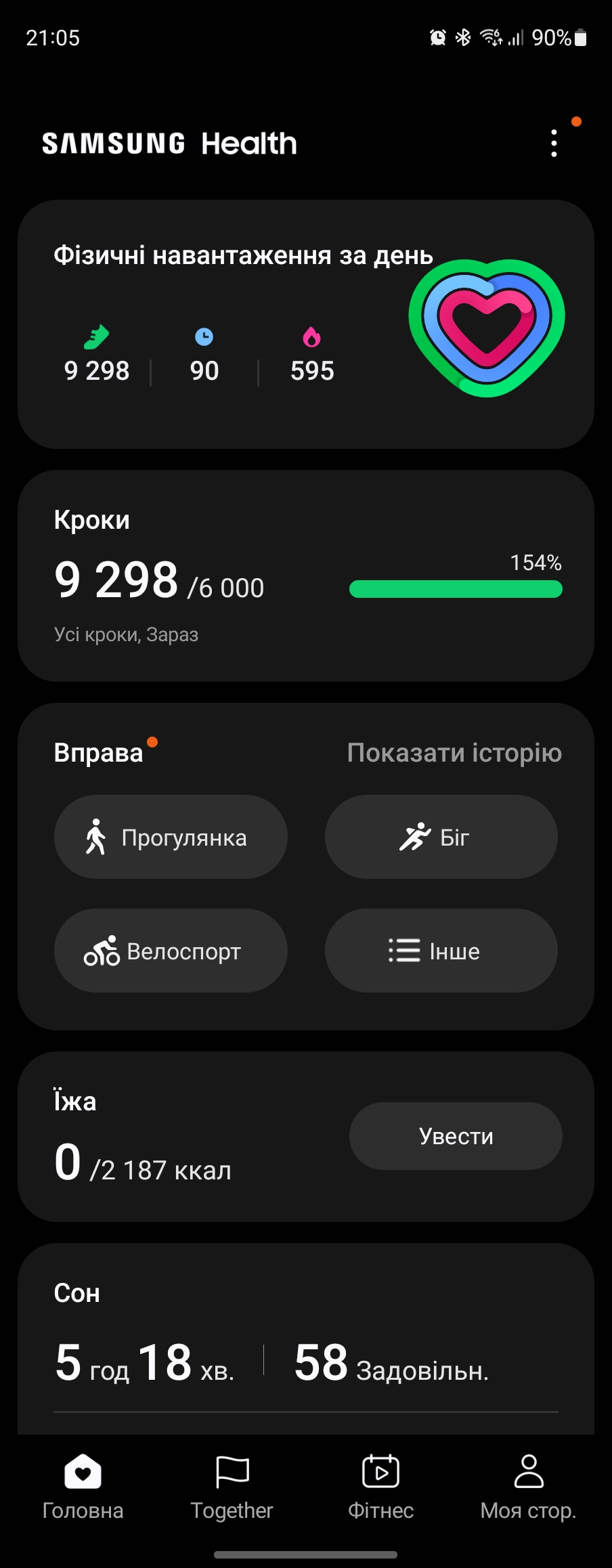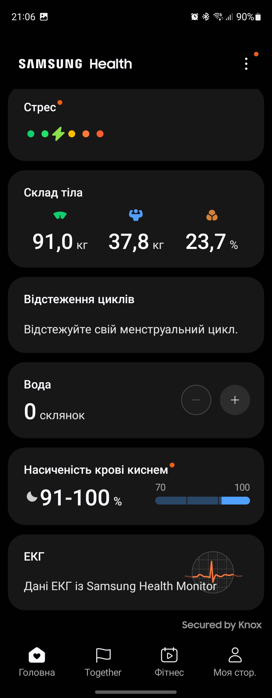 Aplikacja Samsung Health odpowiada za wszystkie wskaźniki zdrowotne, historię treningów itp.: