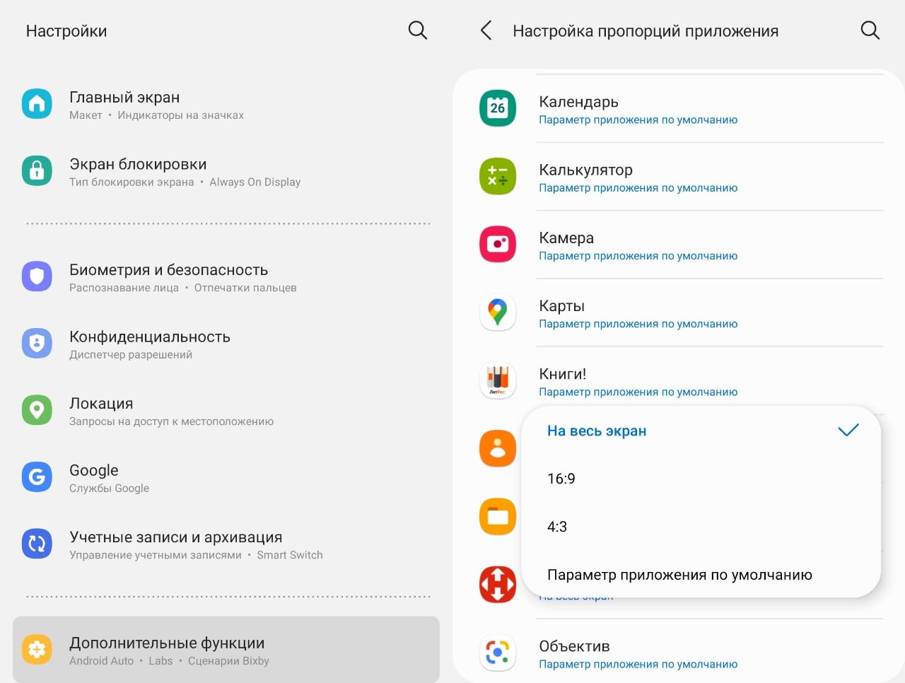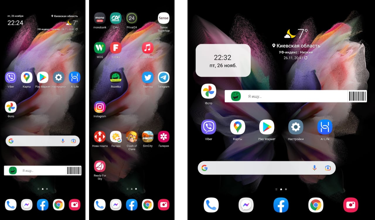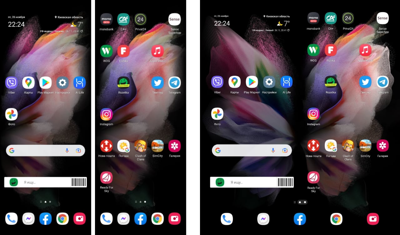 Oczywiście ekrany zewnętrzne i główne Galaxy Z Fold3 mają różne proporcje, więc nieuchronnie pojawia się pytanie – jak będą wyświetlane aplikacje, które nic nie wiedzą o istnieniu smartfonów ze składanymi ekranami. W tym celu w menu Labs znajduje się sekcja „Dostosowanie proporcji aplikacji”. Wygląd aplikacji może ulec zmianie w zależności od ustawień. Jako przykład wziąłem aplikację Nova Poshta, która w zasadzie jest zoptymalizowana pod kątem dużych ekranów. Warto jednak zauważyć, że nie da się z góry przewidzieć, co i jak wyświetli się aplikacja – użytkownik będzie musiał poeksperymentować.