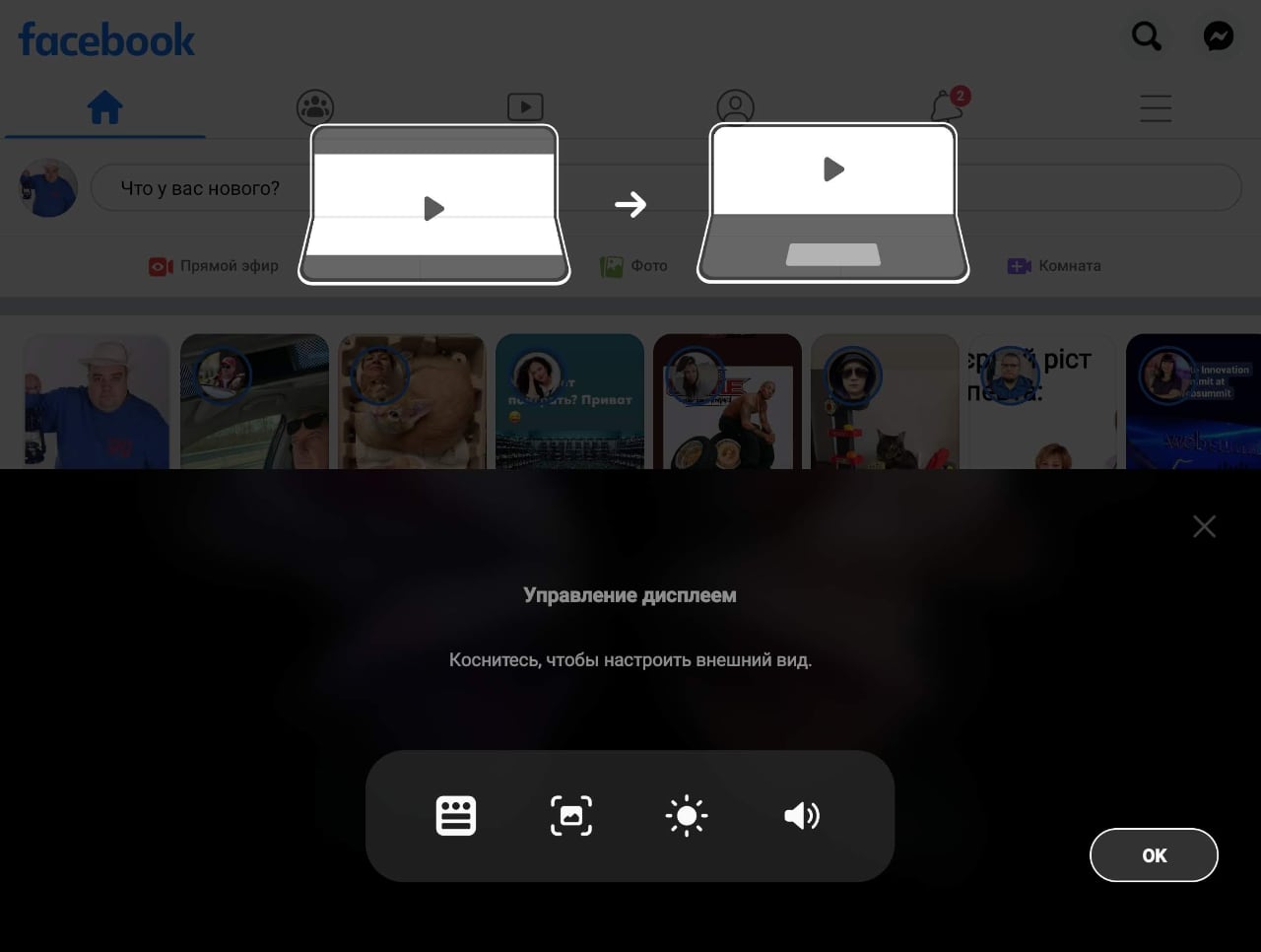 Kolejną innowacją Ome UI w wersji 3.1.1 jest powielenie zewnętrznego ekranu na pulpicie. Jest to prosty przełącznik znajdujący się w menu Home screen (swoją drogą, w mojej wersji firmware'u tłumaczenie wygląda dziwnie - „duplikat okładki”, w tym przypadku okładka nie jest okładką, a zewnętrznym wyświetlaczem).