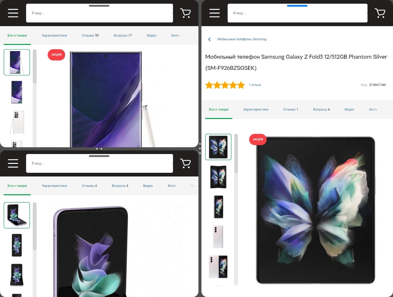 Mówiąc o użyteczności wszystkich tych innowacji, należy zauważyć, że tryb wielookienkowy jest nadal surowy i wymaga ulepszenia. Rzeczywiście, jak wygodne jest dla samych programistów korzystanie z witryn w takich trzech oknach? W teorii Samsung mówi, że jest to wygodne przy wyborze produktów – w jednym oknie masz listę produktów, w drugim otwierasz strony z konkretnymi produktami. Otóż ​​tak wygląda ten schemat pracy z Socketem. Trudno ocenić, dlaczego jest lepszy niż przeglądarka otwarta na pełny ekran z kilkoma zakładkami. Jednocześnie oczywiste rozwiązanie - zmniejszenie rozmiaru czcionek systemowych - po prostu nie działa (tutaj na zrzutach ekranu czcionki są ustawione na minimum, nadal nic nie widać).