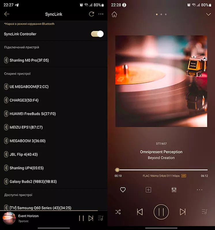 W przypadku korzystania ze smartfona jako źródła, odtwarzaniem można sterować zarówno z poziomu odtwarzacza, jak i smartfona. A dzięki autorskiej aplikacji Eddict Player i obsłudze SyncLink można sterować odtwarzaniem muzyki z karty pamięci w odtwarzaczu za pomocą smartfona.