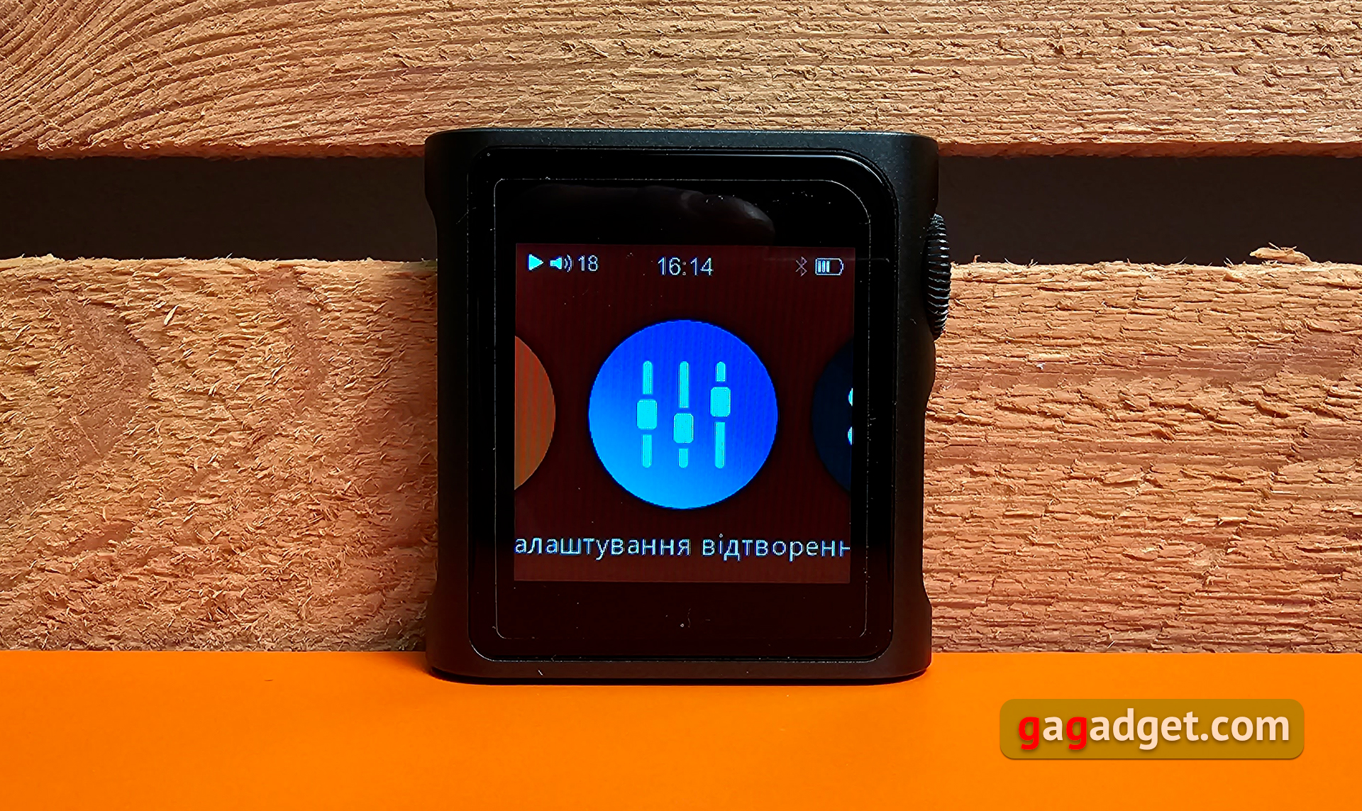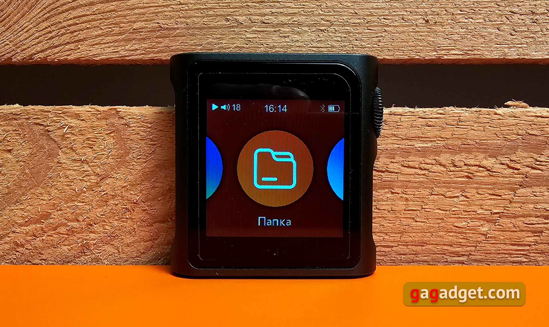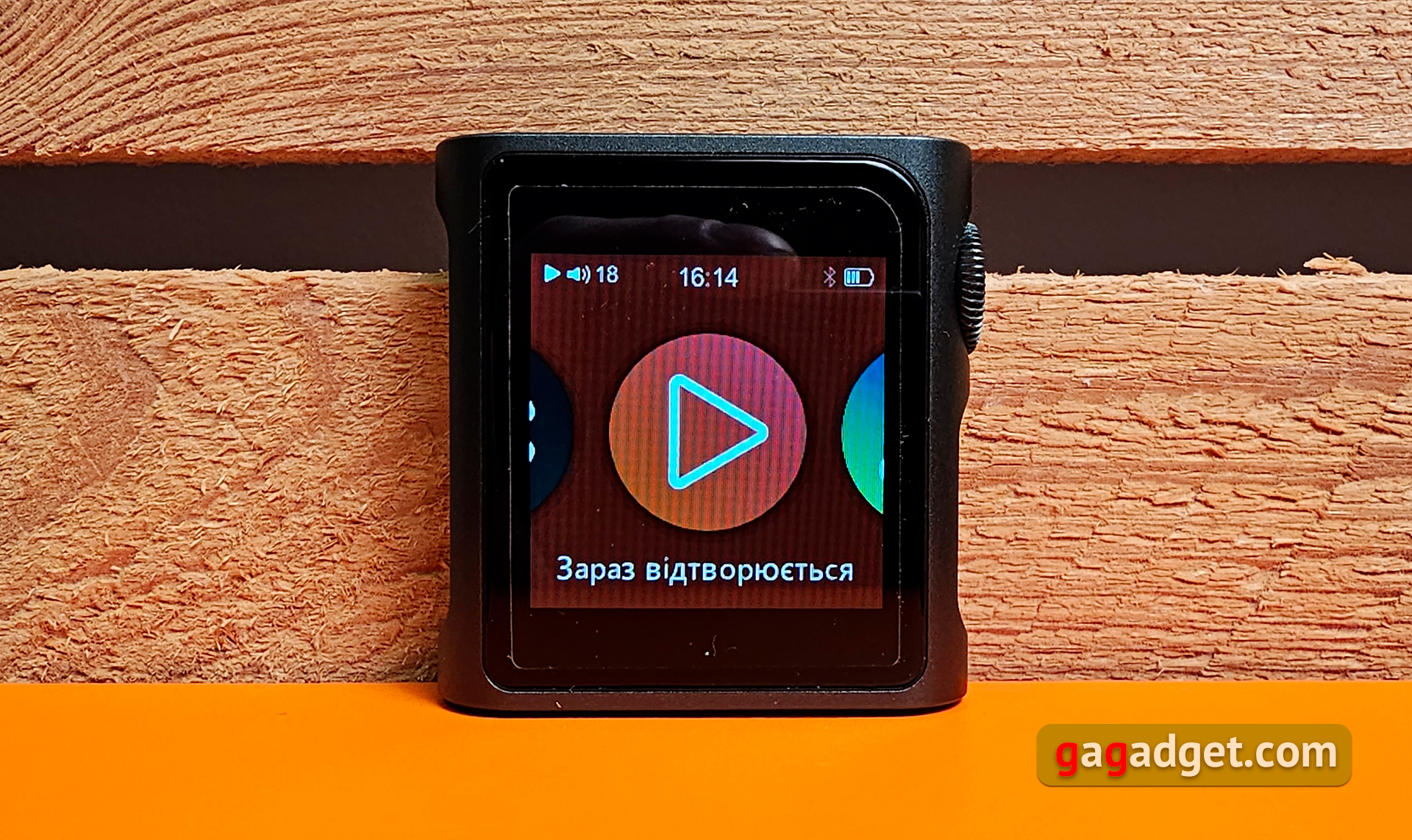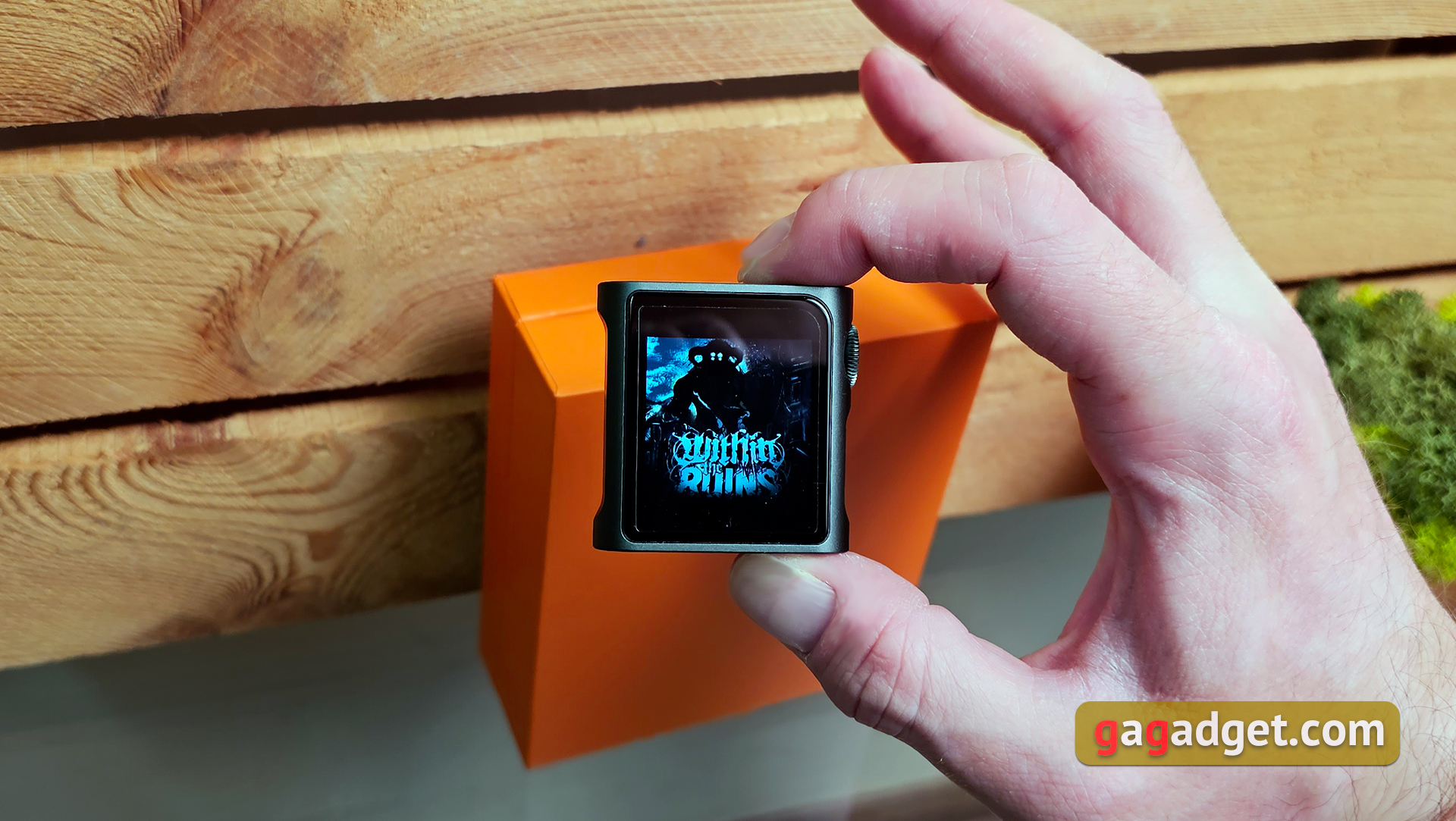 Przedni panel ma czarne szkło ochronne z zaokrąglonymi krawędziami i 1,54-calowy ekran dotykowy o rozdzielczości 240x240. Jest on niewielki, ale w zupełności wystarcza do sterowania głównymi funkcjami odtwarzacza.