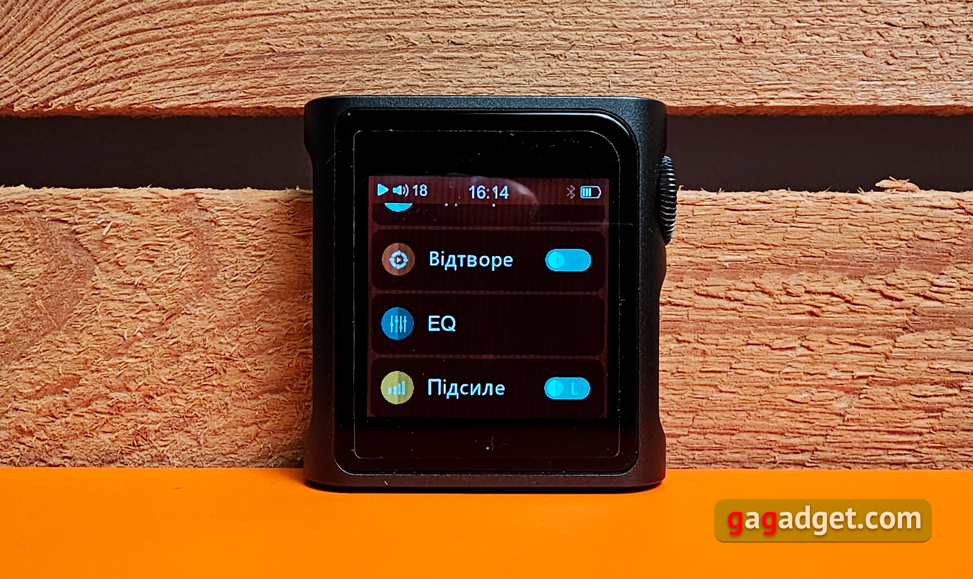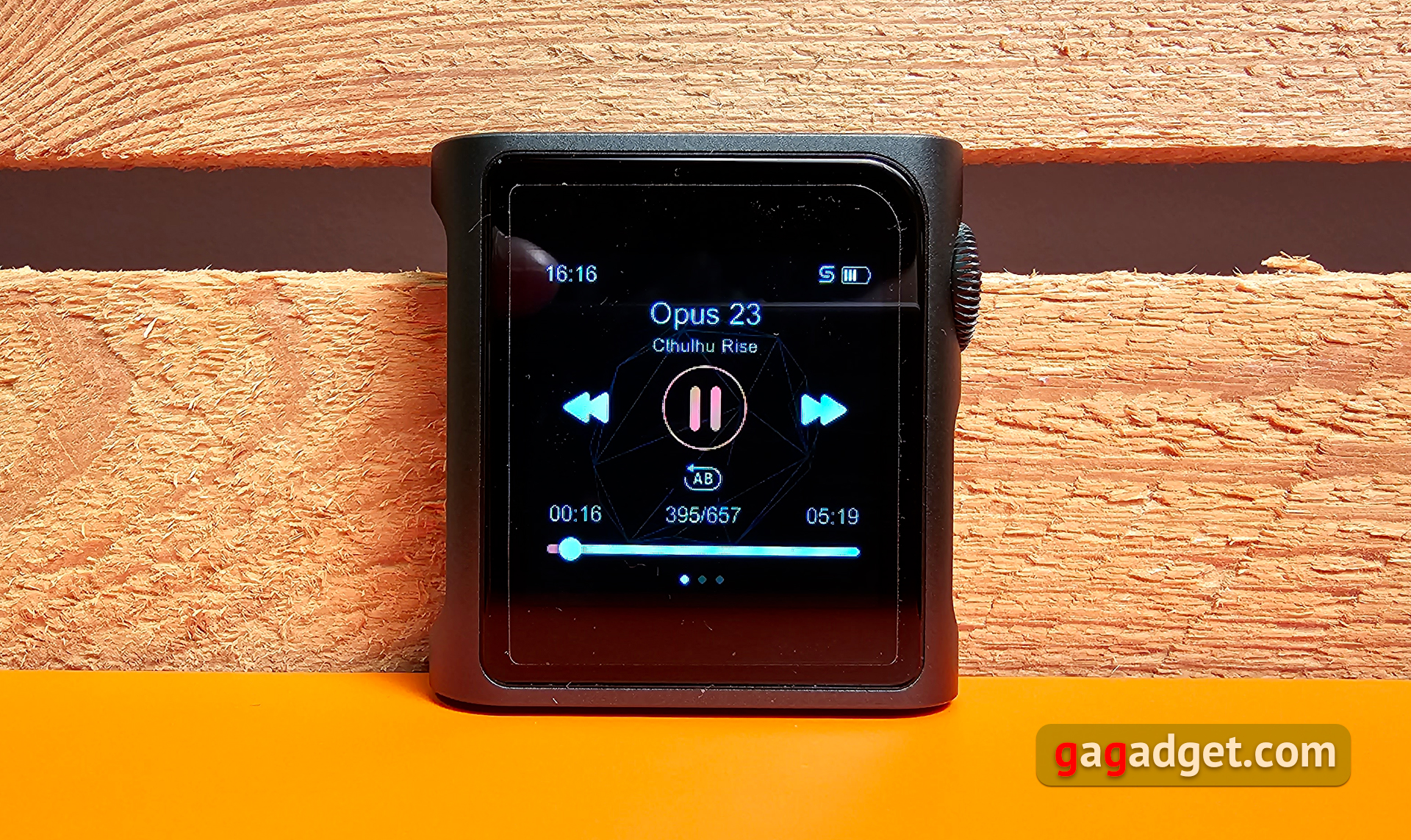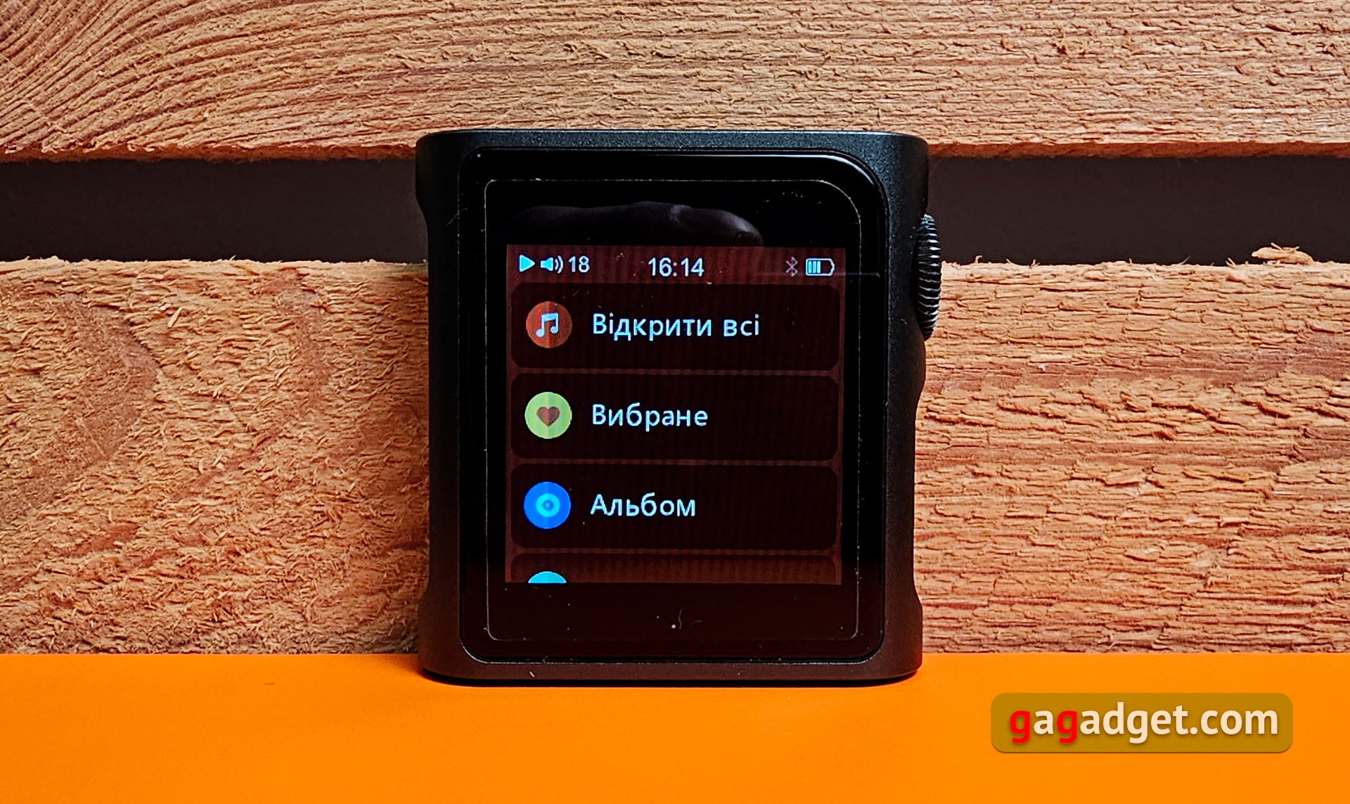Przedni panel ma czarne szkło ochronne z zaokrąglonymi krawędziami i 1,54-calowy ekran dotykowy o rozdzielczości 240x240. Jest on niewielki, ale w zupełności wystarcza do sterowania głównymi funkcjami odtwarzacza.