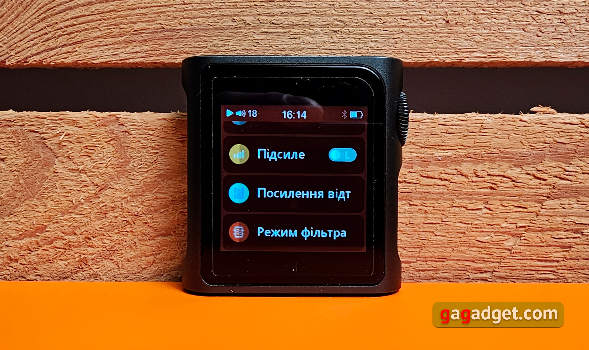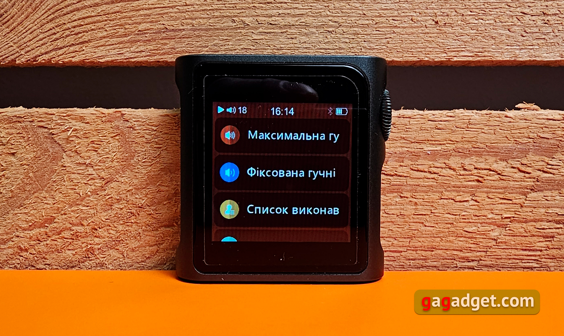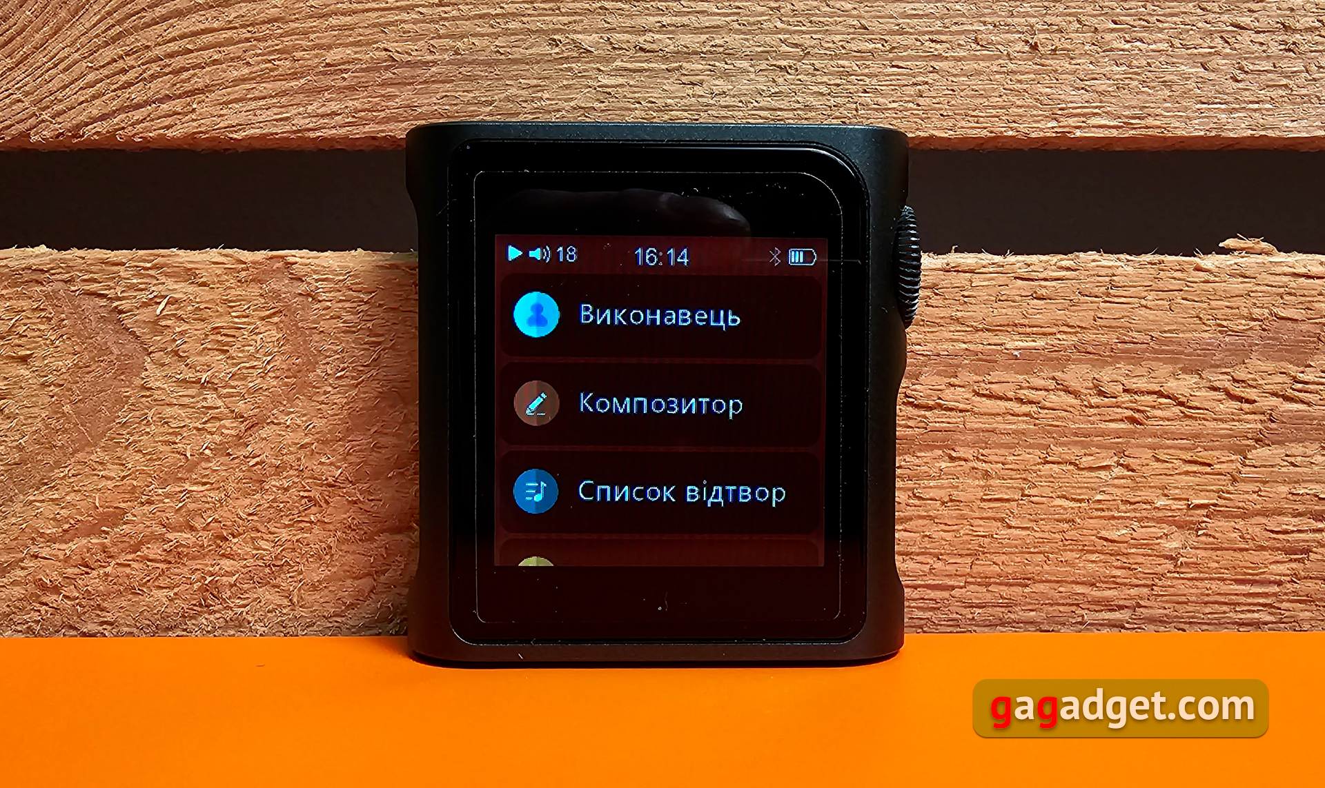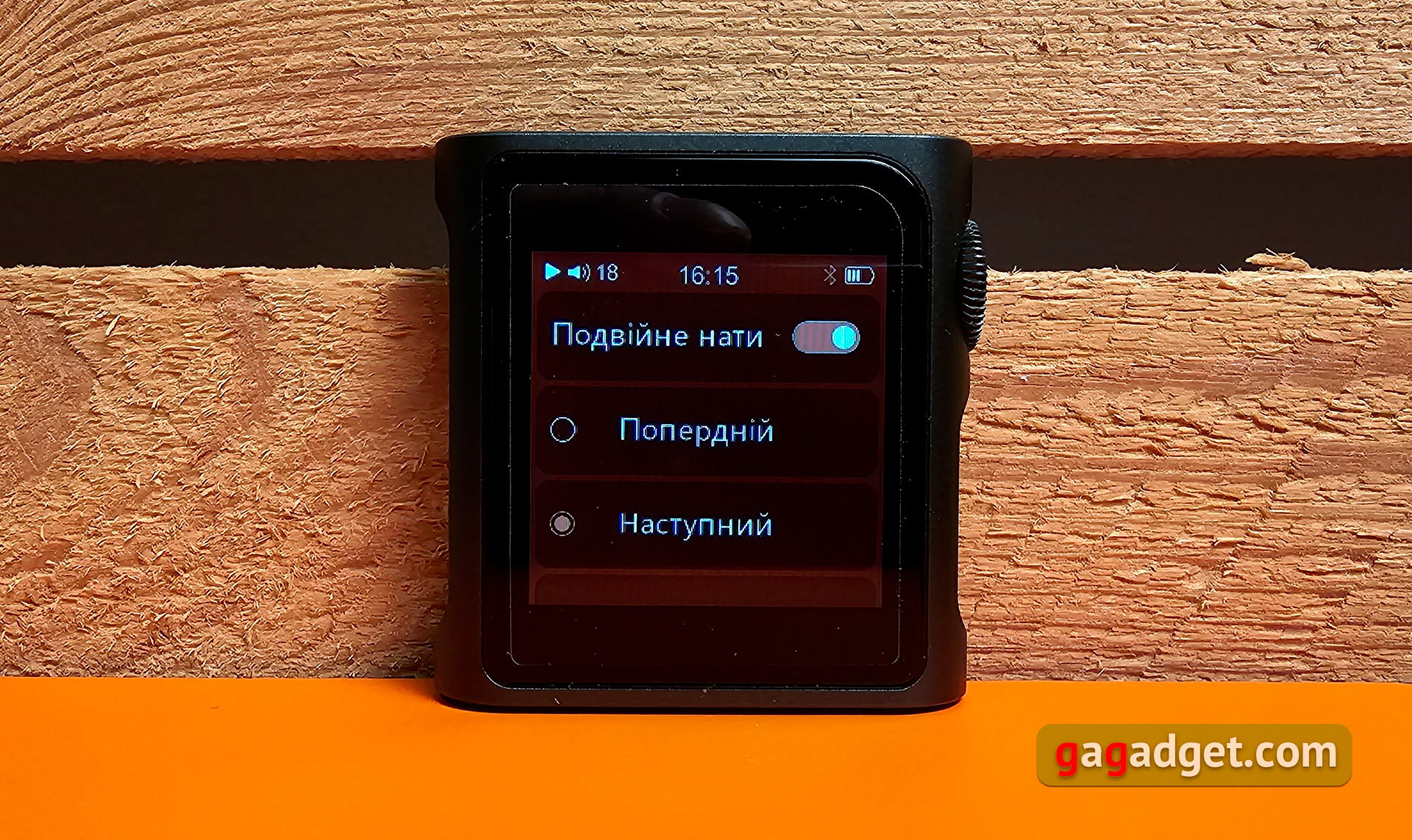 Przedni panel ma czarne szkło ochronne z zaokrąglonymi krawędziami i 1,54-calowy ekran dotykowy o rozdzielczości 240x240. Jest on niewielki, ale w zupełności wystarcza do sterowania głównymi funkcjami odtwarzacza.
