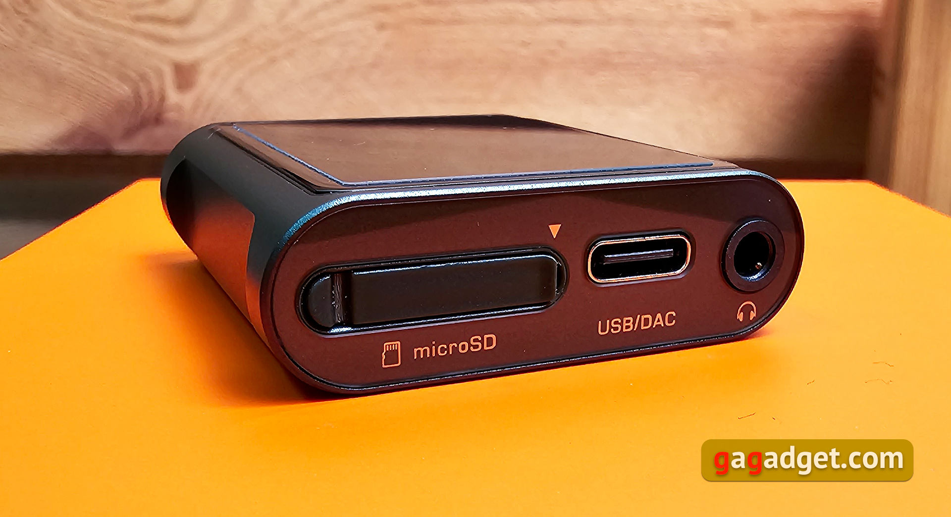 Na spodzie znajduje się złącze Type-C do ładowania i podłączenia do komputera lub smartfona jako USB DAC, gniazdo kart microSD (odtwarzacz nie ma wbudowanej pamięci) oraz nietypowe gniazdo słuchawkowe 3,5 mm. Może pracować zarówno w trybie standardowym, jak i zbalansowanym. W tym celu należy jednak osobno dokupić firmową przejściówkę z 3,5 mm na 4,4 mm zbalansowane Pentaconn. Niestety, firma zdecydowała się nie dołączać go do odtwarzacza, ale sprzedawać osobno.