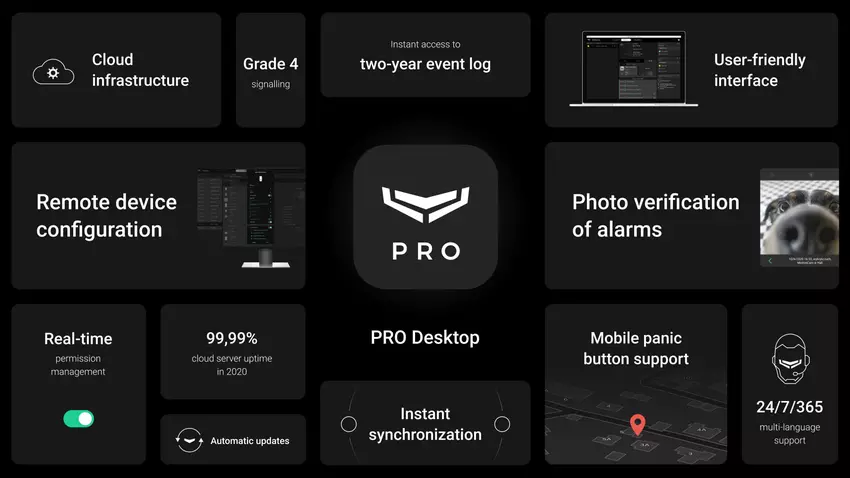 Zaktualizowana została również desktopowa wersja aplikacji do administrowania systemami bezpieczeństwa Ajax – PRO Desktop 3.0. Ma wersje dla Windows i MacOS. Nowa opcja oferuje administratorom szybkie połączenie i zdalną konfigurację urządzeń, elastyczny system uprawnień dostępu i szczegółowy dziennik zdarzeń do monitorowania pracowników, a także wbudowaną foto weryfikację alarmów oraz obsługę mobilnego przycisku SOS.
