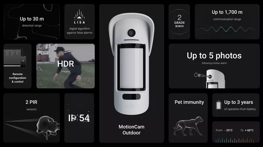 Oprócz zaprezentowanego w zeszłym roku czujnika ruchu z kamerą MotionCam, Ajax ukazuje również jego wersję do instalacji zewnętrznej: MotionCam Outdoor. Otrzymał stopień ochrony przed wodą i zachlapaniem IP54, ochronę przed deszczem i śniegiem oraz możliwość kontrolowania obszaru do 175 metrów kwadratowych.