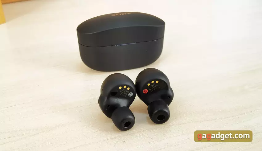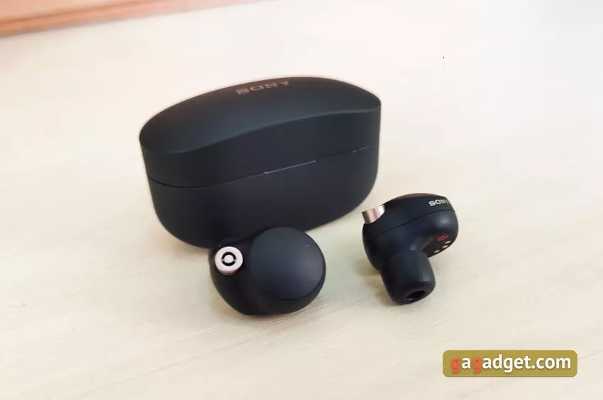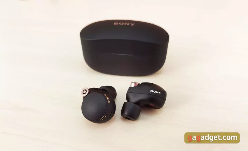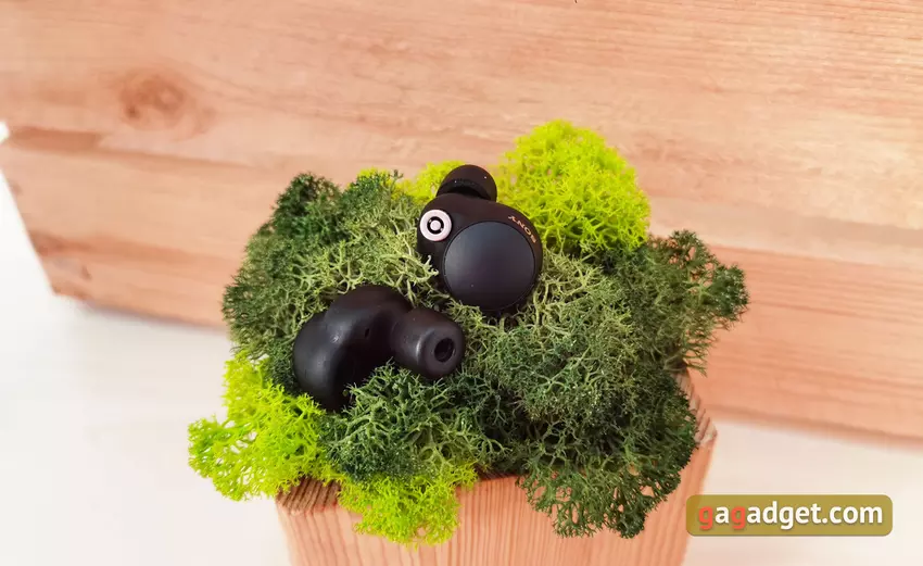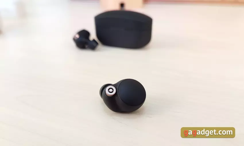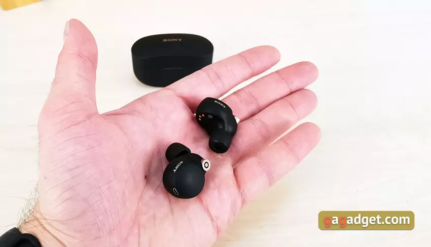 Sony WF-1000XM4 ma dość udany i przemyślany kształt: są doskonale osadzone w uszach, nie wypadają, nie przeszkadzają i nie stwarzają dyskomfort.  Ale przed zakupem warto przymierzyć: dla małych uszu.  Jedynym punktem, o którym warto wspomnieć, są piankowe nasadki. Będziesz musiał się do nich trochę przyzwyczaić, jeśli nie miałeś je wcześniej.  Zapewniają jednak bardzo dobrą pasywną izolację akustyczną.  Z drugiej strony w razie potrzeby można używać załączników innych firm.  Słuchawki praktycznie nie wystają z uszu, co daje nadzieję na wygodne użytkowanie zimą z czapką.  „Lądowanie” w przewodzie słuchowym jest średnio głębokie, całkiem wygodne.
