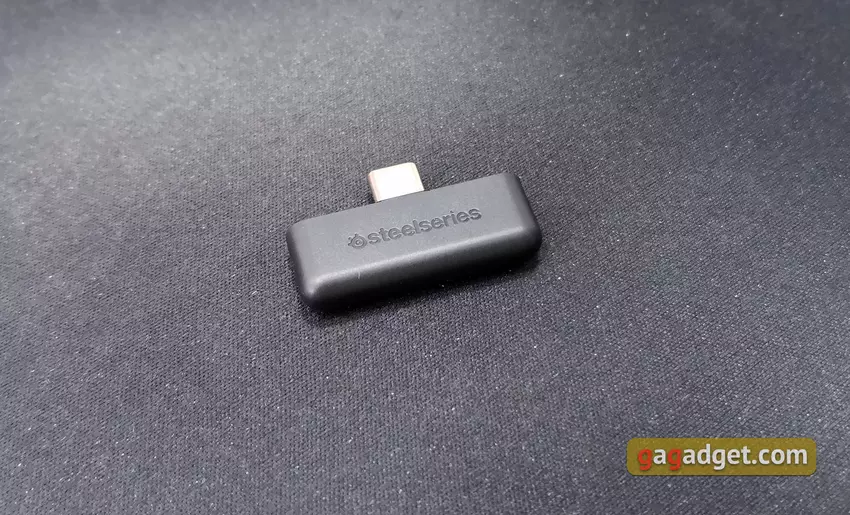Urządzenia bez typu C, takie jak Sony PlayStation 4 lub nie najnowsze komputery stacjonarne / laptopy, są połączone za pomocą dołączonego kabla adaptera. Podłącza się do portu USB typu A wymaganego urządzenia i jest w nim kompletnym nadajnikiem. Zestaw słuchawkowy „uruchamia się” natychmiast po włączeniu, nie wymaga żadnych dodatkowych manipulacji ani na konsolach, ani na komputerze. W każdym razie nie miałem takich problemów. W przypadku rozładowanej bateriidostarczany jest kabel 3,5 mm i złącze do niego.